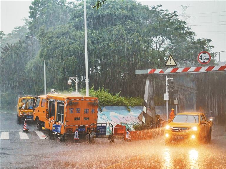 深圳新闻网2025年6月18日讯(深圳特区报记者 毕晗 通讯员 李玮 摄)连日来,全市迎来台风暴雨天气,宝安排水有限公司迅速响应,冲锋在防汛第一线,守护道路交通安全。图为排水工程人员在西乡铁岗公园附近抢险。