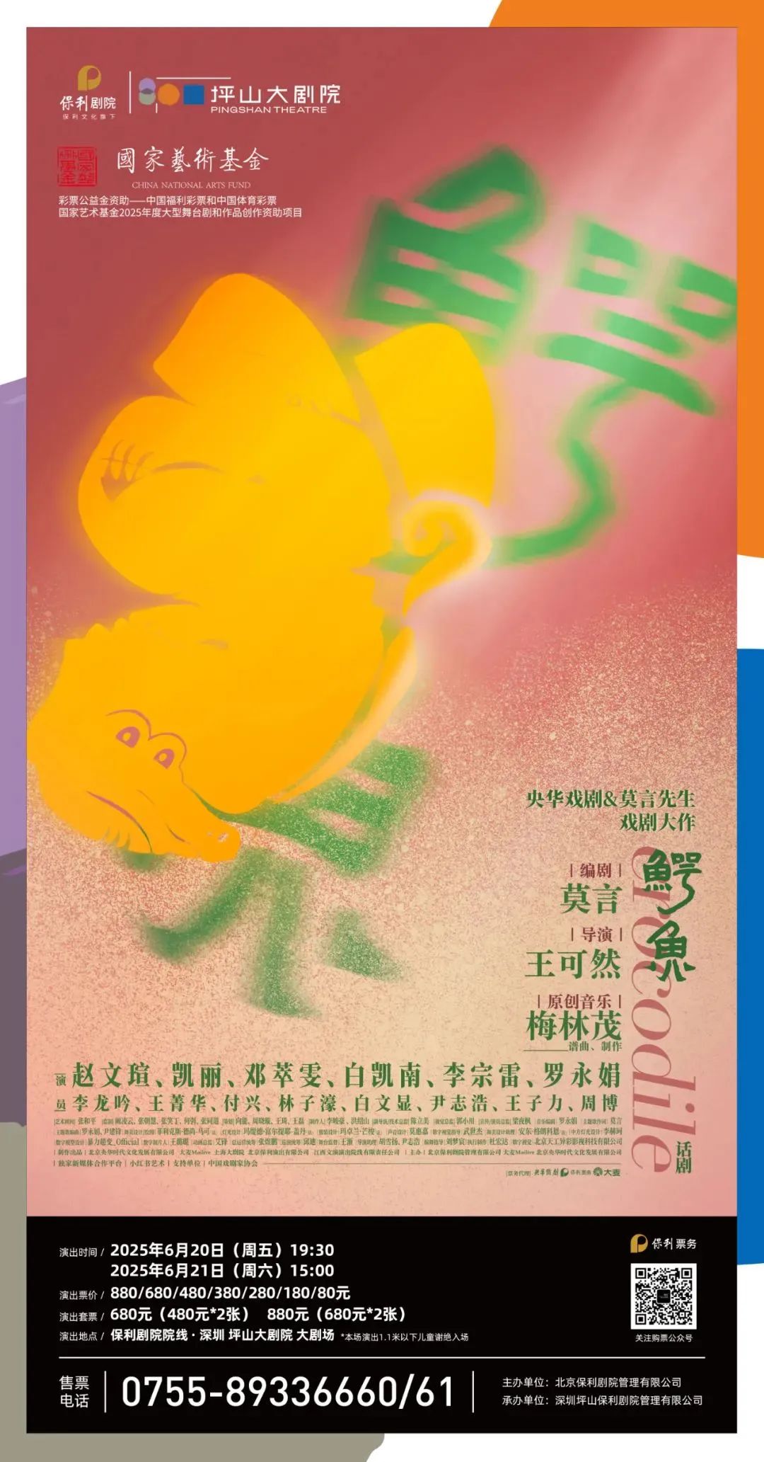 6月21日,话剧《鳄鱼》还将继续在坪山大剧院上演。接下来,三度回归依旧“一票难求”的舞剧《永不消逝的电波》、高口碑“新·国风”音乐剧《锦衣卫》、全程高能的“现象级话剧”《蒋公的面子》、原创舞剧《永和九年》——兰亭集序·舞传等诸多优质文化精品将陆续在坪山上演,持续为坪山居民呈现家门口的高品质文化滋养。