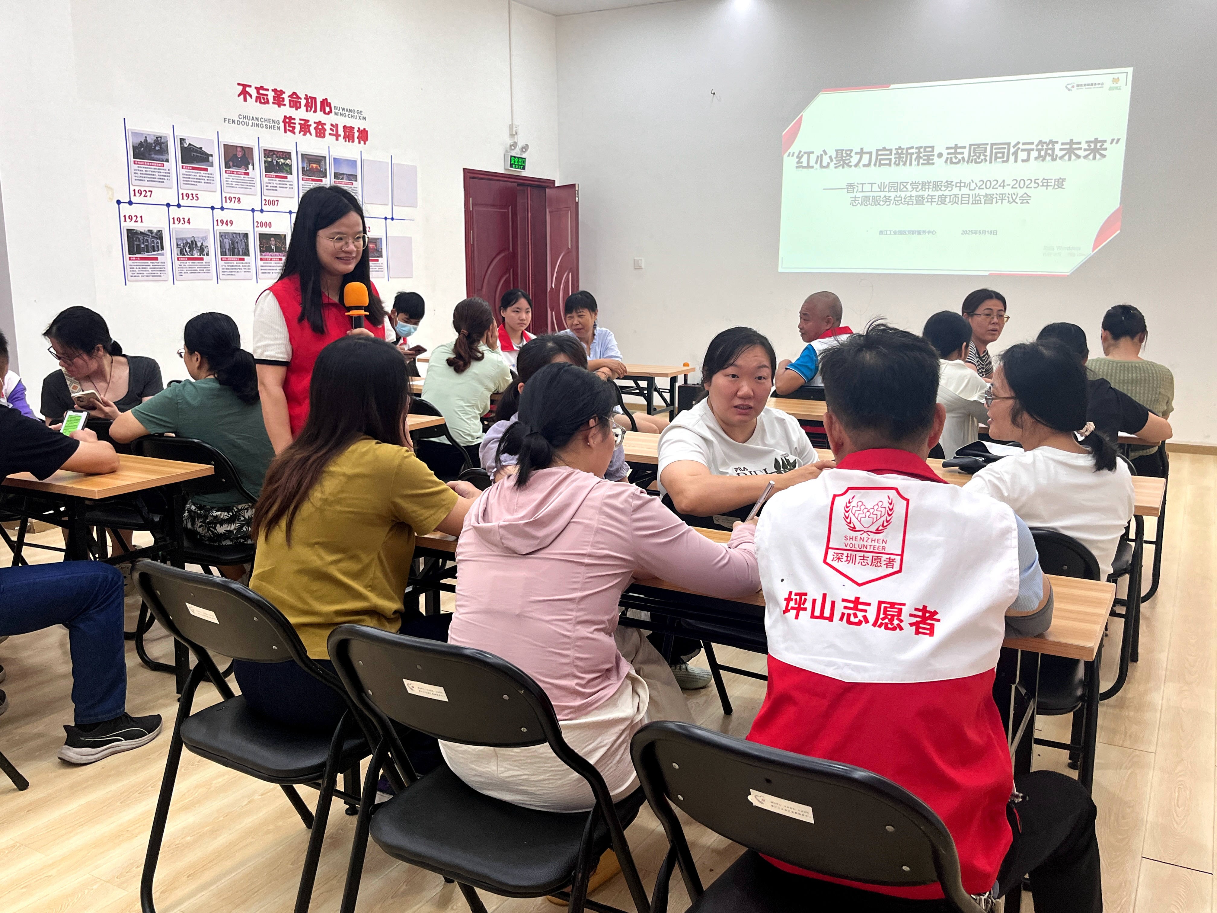 深圳新闻网2025年6月21日讯(记者 王奕婷通讯员 李超 张来芳)近日,坪山区马峦街道江岭社区香江工业园区党群服务中心邀请辖区企业代表、职工代表、志愿者代表和合作方代表等共聚一堂,开展“红心聚力启新程·志愿同行筑未来”2024-2025年度志愿服务总结暨项目评议会,共同回顾项目服务成果,展望未来服务方向。