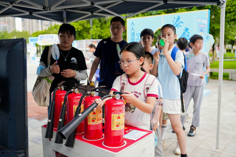 体验区是本次活动最受欢迎的部分之一。这里设置了八项体验项目,包括模拟灭火体验、安全知识互动抢答、心肺复苏体验、消防结绳体验、模拟报警体验、交通标识测试体验、汽车盲区体验以及地震仿真平台体验。此外,还有两项趣味实验:激光笔灭气球和吹风机吹乒乓球。这些项目不仅让市民在实践中学习安全知识,还增加了活动的趣味性和互动性。