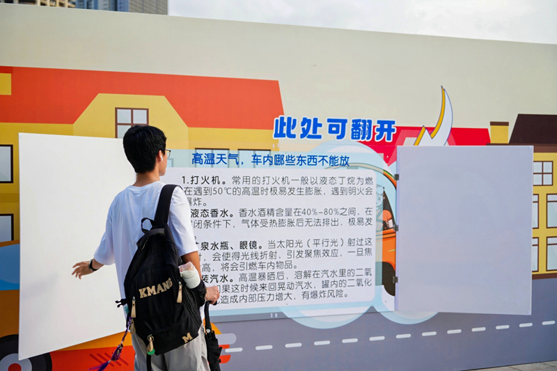 活动现场设置了“咨询区”“宣传区”“体验区”和“打卡区”四大区域,为市民提供了全方位的安全知识学习和体验机会。在咨询区,工作人员向市民派发了应急安全相关的宣传资料,同时安排了律师驻点服务,为市民解答与安全相关的法律问题。宣传区则通过展板,详细展示了电动自行车安全、机动车使用安全、居家用电安全、厨房火灾预防等多方面的应急安全知识。
