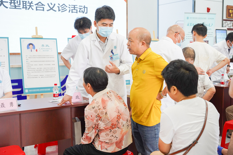 在当天的联合义诊活动中,来自深圳平乐中医健康集团(深圳市骨伤科医院、坪山区中医院)组织康复科、骨关节科、针灸科、妇科、筋伤科、上肢科、泌尿外科、中医护理等多个优势专科的12名专家,联合东源县中医院医护团队,通过中医特色的“望闻问切”等问诊方式,根据现场群众的症状体征、既往病史、检查报告等给出详细诊疗建议,针对本地常见、多发疾病和疑难病症,提供专业诊断与治疗服务,免费开展针灸、推拿、正骨手法等中医适宜技术体验。现场参与的群众络绎不绝,连暴雨也无法阻挡大家的热情。