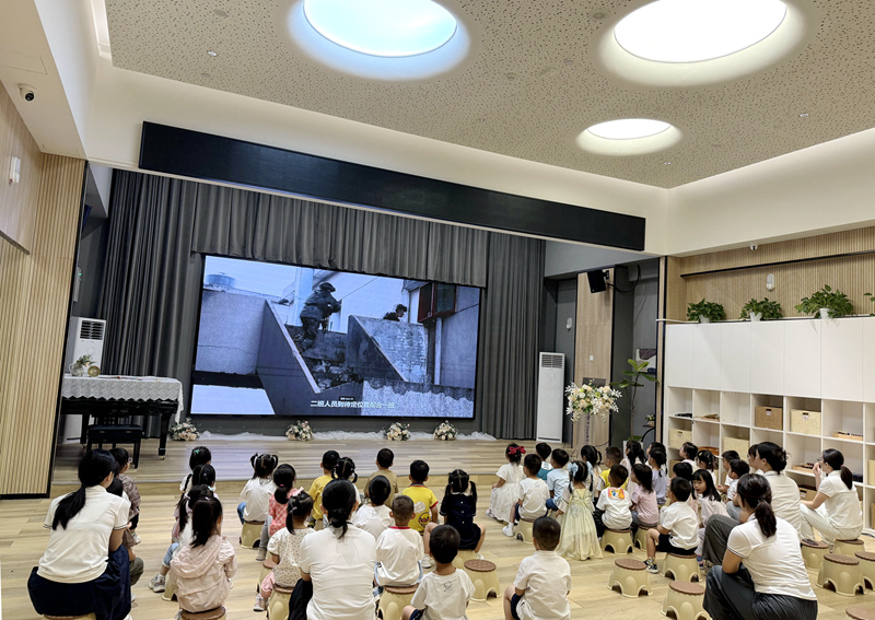活动伊始,一部精心制作的国防主题微电影吸引了全体师生的目光。影片带领师生们穿越历史时空长廊,以生动的影像回溯,为大家铺开了一幅波澜壮阔的国家安全与军事发展画卷,让孩子们初步感受到了国防的厚重与伟大。