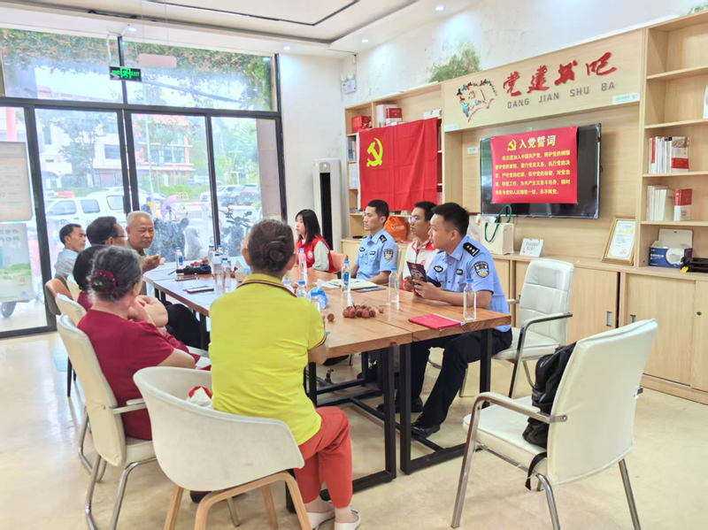 在庄重而肃穆的氛围中,坪河雅苑党支部带领所有老党员同志重温了入党誓词。大家右手握拳,目光坚毅,齐声宣誓,再次深刻感受到了作为一名共产党员的责任与使命,进一步坚定了理想信念,牢记初心使命。此次活动通过“反诈 + 志愿 + 红色教育”形式,让老党员在参与中感受组织关怀,更激发“银发力量”参与社区治理。