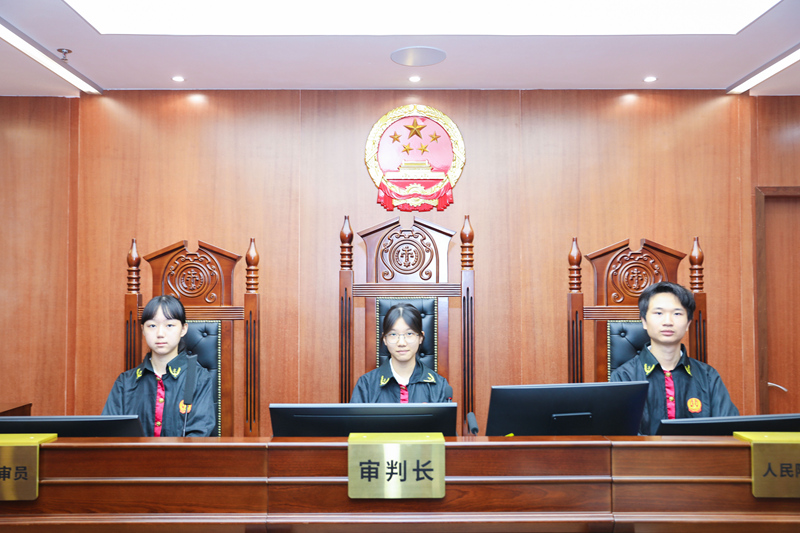 在坪山区人民法院,深港少年“沉浸式”旁听案件庭审,深刻感受到法庭的威严与庄重。他们还亲身体验司法日常环节,有的穿上法袍郑重敲下法槌,有的在书记员指导下尝试速录,还有的站在公诉席前,捧着案卷练习起诉词。