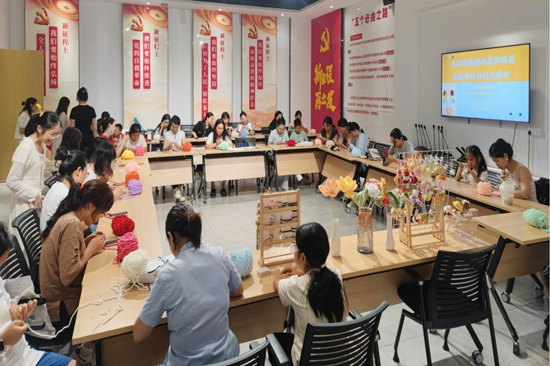 “大家看,这样一钩一绕,一个漂亮的小花瓣就出来了。”讲师一边示范,一边结合当下市场的流行趋势,引导参与人员思考如何将传统钩针编织与现代设计理念相融合,把简单的手工艺品打造成时尚的文创产品。“我们不仅要让大家学会钩针技巧,更要教会大家如何把这些作品变成实实在在的商品,实现技能向财富的转化。”讲师介绍道。