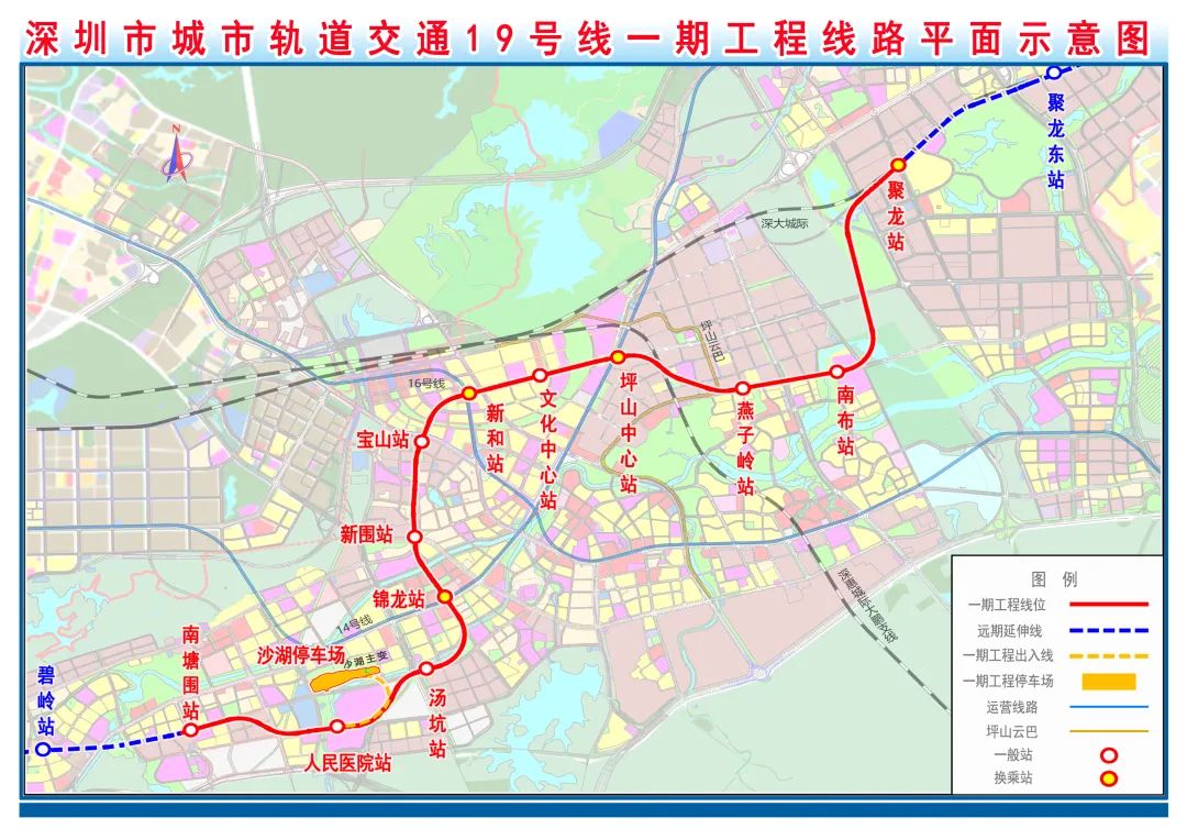 作为东部重要骨干线路,地铁19号线未来将与14号线、16号线无缝衔接,并协同在建的深大城际实现轨道交通客流的有效集散与便捷换乘。线路开通后,将提升坪山区轨道交通网络的整体效益和服务水平,对增强东部区域发展动能,强化区域辐射带动作用具有深远意义。