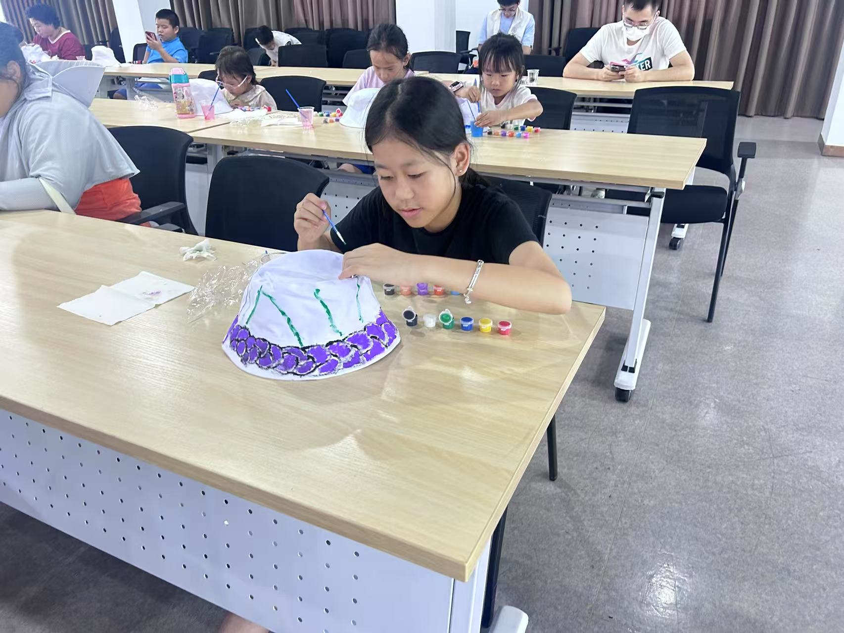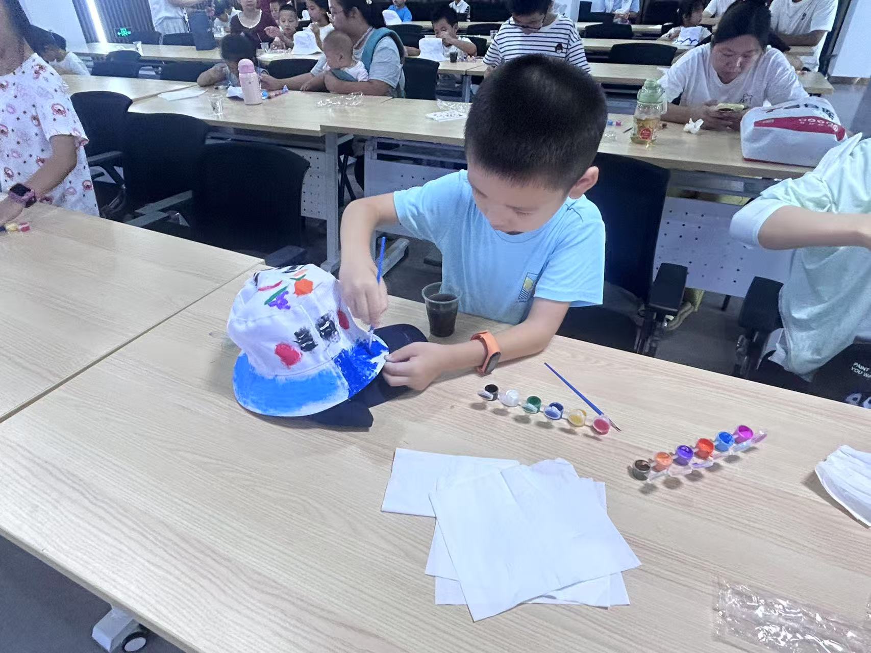 当大小手掌共绘线条时,交融的不只是颜料,更是两代人共同编织的美好记忆。压轴的“帽子秀”环节,孩子们自豪展示作品,清脆的笑声与掌声,谱就今夏最美乐章。