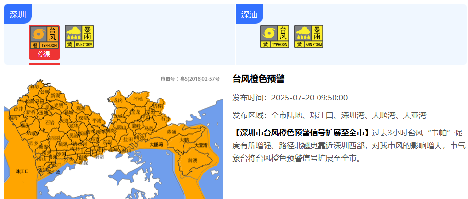 深圳市全市台风橙色预警信号