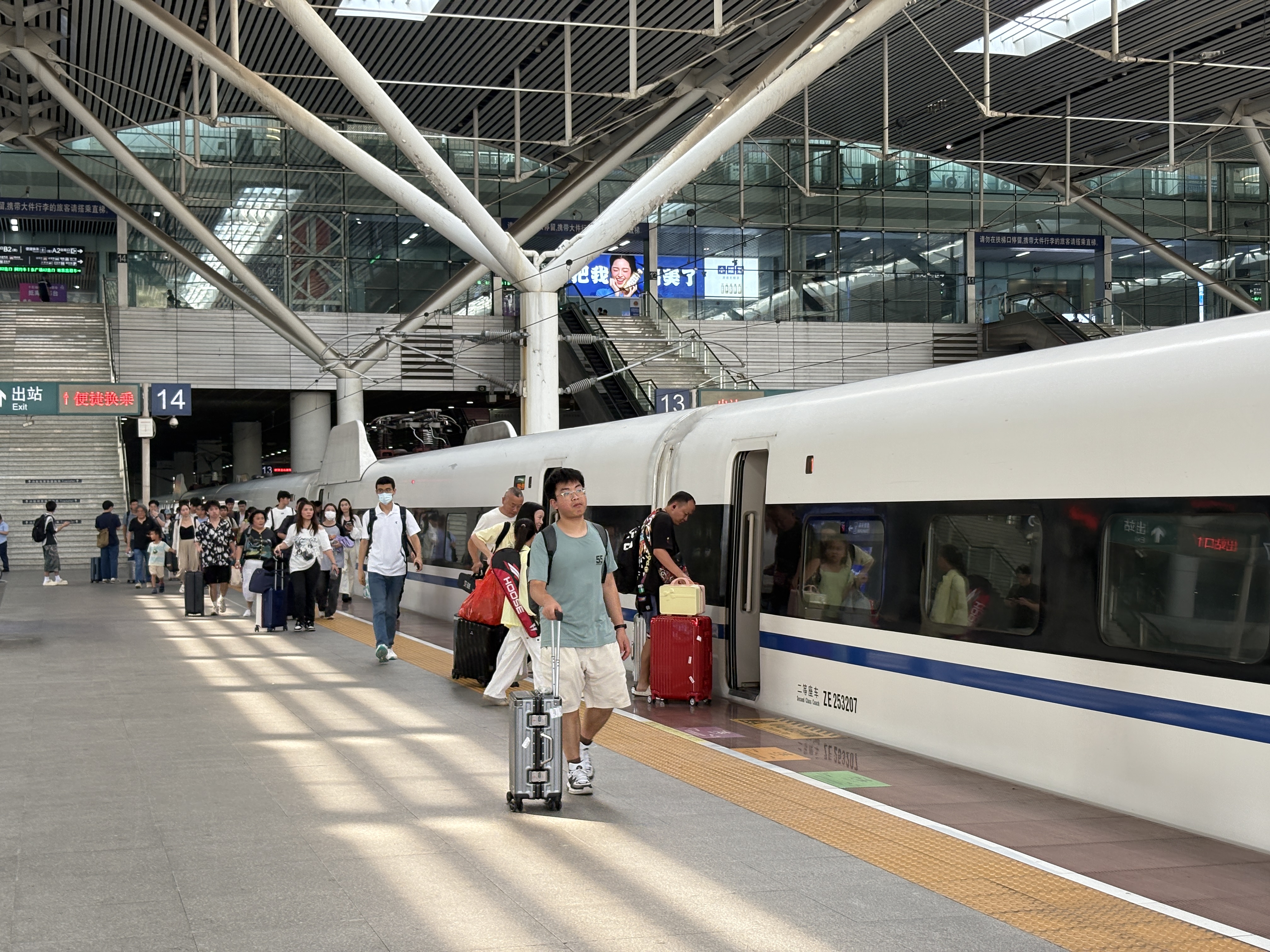 据了解,今年暑运以来,深圳铁路客流持续呈现“稳步上升”态势,日均发送旅客29.2万人次。初期以旅游流、探亲流为主,主要前往长三角、成渝、湘赣等方向;随着学生流叠加,中短途高铁成为出行热门选择,广深港高铁运送跨境旅客174.1万人次。受台风“韦帕”影响,近日部分列车停运或晚点,客流出现短暂回落,铁路部门通过微信公众号、微博等平台及时推送资讯信息,最大限度减少极端天气对旅客出行的影响。