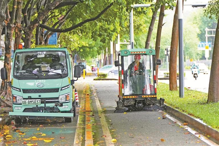 环卫工人清扫路面。 深圳晚报记者 陆颖 摄