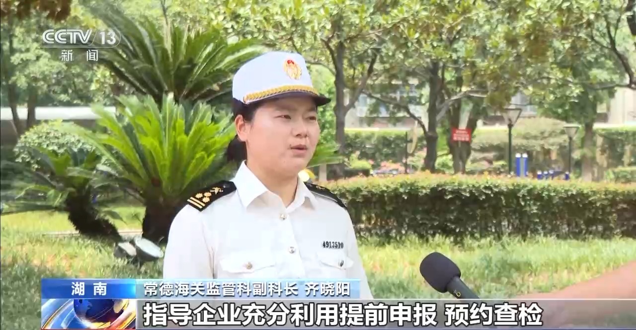 常德海关监管科副科长 齐晓阳:指导企业充分利用提前申报、预约查检、随报随检等通关便利化措施,以及属地查检系统云签发功能,通关时长由原来的6至8小时缩短到2小时以内。
