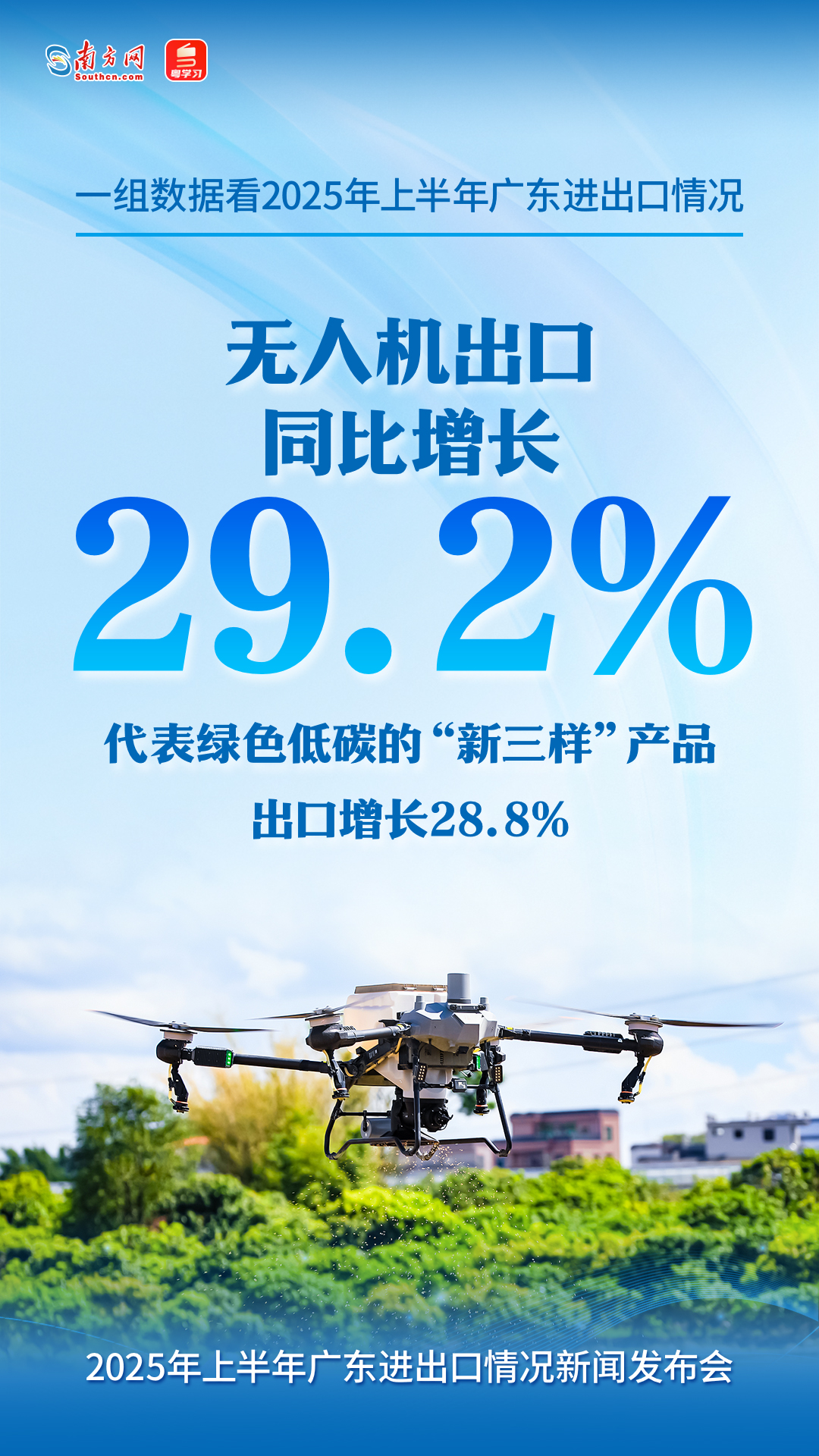 出口产品“含新量”提升。上半年,广东出口机电产品1.96万亿元,增长7.2%,占同期全省出口总值的67.8%。其中,出口电子元件2954亿元,增长17.3%;出口自动数据处理设备及其零部件2154.1亿元,增长15.9%。与新质生产力密切相关的高技术产品出口5054.3亿元,增长13.3%,机床、无人机出口分别增长18.7%、29.2%,代表绿色低碳的“新三样”产品出口增长28.8%。自主品牌产品出口增长11.2%。