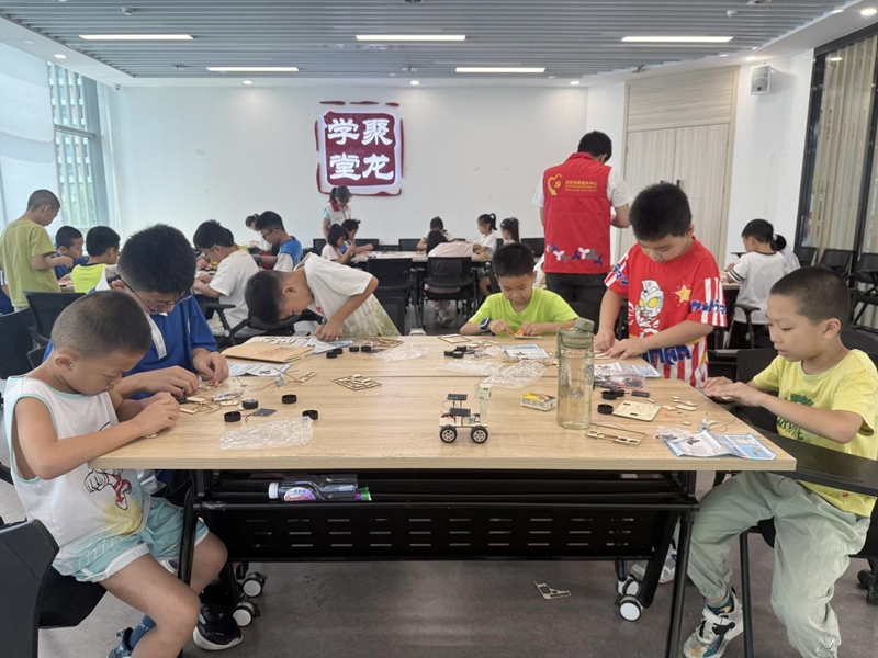 7月18日上午,坪山区群众工作馆组织开展的“小小科学家”研学营(暑假班)开班,吸引聚龙辖区的28名9-14岁青少年参与其中。本次活动以“童心探科,妙趣无穷”为主题,聚焦太阳能应用科普,通过制作太阳能小车的实践环节,让孩子们直观理解太阳能转化为电能的科学原理。