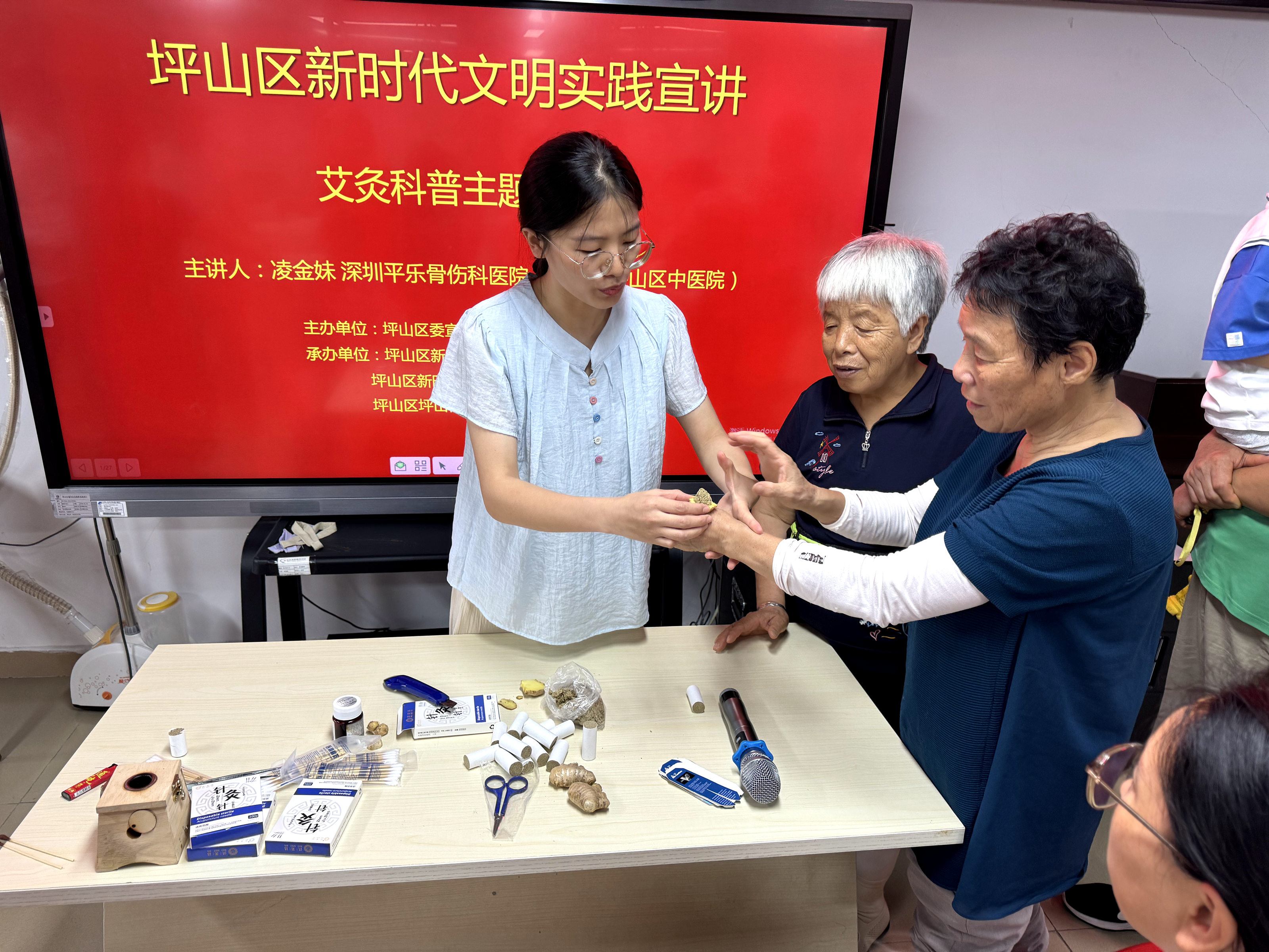 深圳新闻网2025年7月23日讯(记者 王奕婷 通讯员 董琳)近日,深圳市坪山区马峦街道马峦社区新时代文明实践站联合深圳平乐骨伤科医院,举办“探寻千年养生智慧——艾灸”科普主题活动,通过多元化的活动形式弘扬中医文化,为群众普及健康养生知识。
