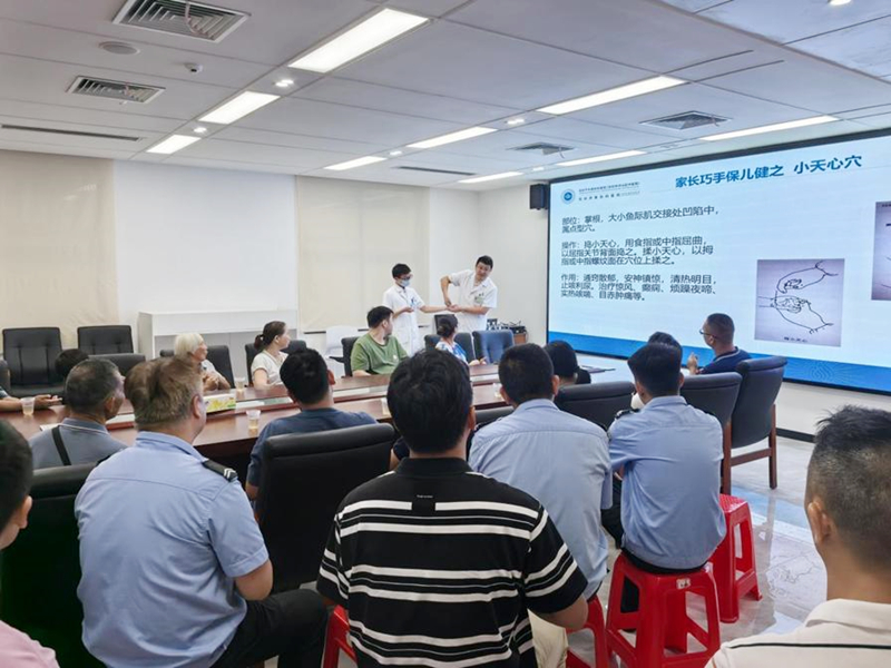 随后,针灸科负责人以《夏季养生与三伏贴应用》为题,结合岭南气候特点,深入浅出地讲解“冬病夏治”原理及三伏贴适用人群;儿科负责人则围绕《儿童常见病预防与保健》,现场演示儿童感冒、咳嗽的小儿推拿实用技能,吸引众多家长参与互动。