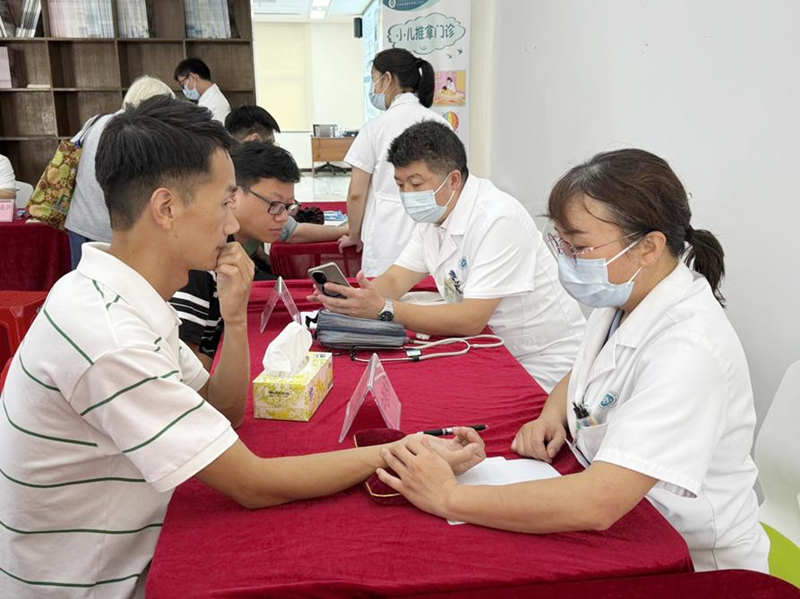 在诊疗体验区,平乐郭氏正骨推拿等非遗技艺引得居民连连赞叹。中医诊疗区开设专病专台:针灸治疗、体质辨识、血压检测、肠癌筛查等服务有序开展;耳穴压豆、火龙罐、三伏贴贴敷等中医特色疗法体验区人头攒动。国家基本公共卫生服务宣传区同步为65岁以上长者及慢性病患者预约免费体检,发放家庭医生签约礼包。现场还提供健脾祛湿茶,赠送醒神驱蚊香囊、养生经络梳、儿童膏方棒棒糖等健康礼品。