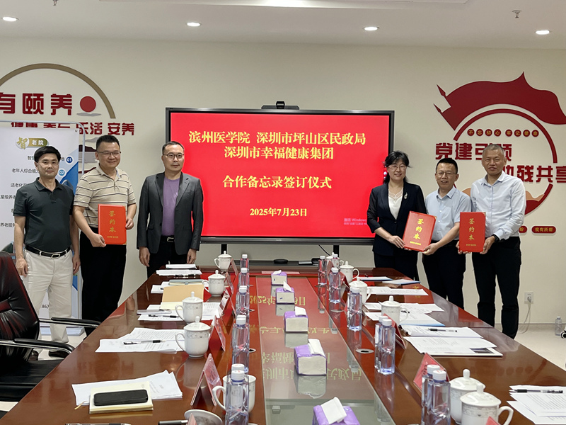 在随后召开的专题座谈会上,坪山区民政局、滨州医学院特殊教育与康复学院、深圳市幸福健康产业(集团)有限公司分别就残疾人康复服务体系建设现状、儿童康复尤其是孤独症康复合作规划、滨州医学院有关学术专长与特色等事项进行专项汇报交流,并就推动共建大湾区残疾人康复高地、共创残疾人学生实习实训基地、共促残疾人学生就业创业、共享康复辅具科研成果转化等合作事项展开深入研讨。随后,三方正式签订残疾人康复服务《合作备忘录》,标志着坪山区“校地企”深度融合机制正式落地,通过滨州医学院的学科优势与地方产业资源协同,为残疾人康复事业高质量发展构建起创新生态体系。