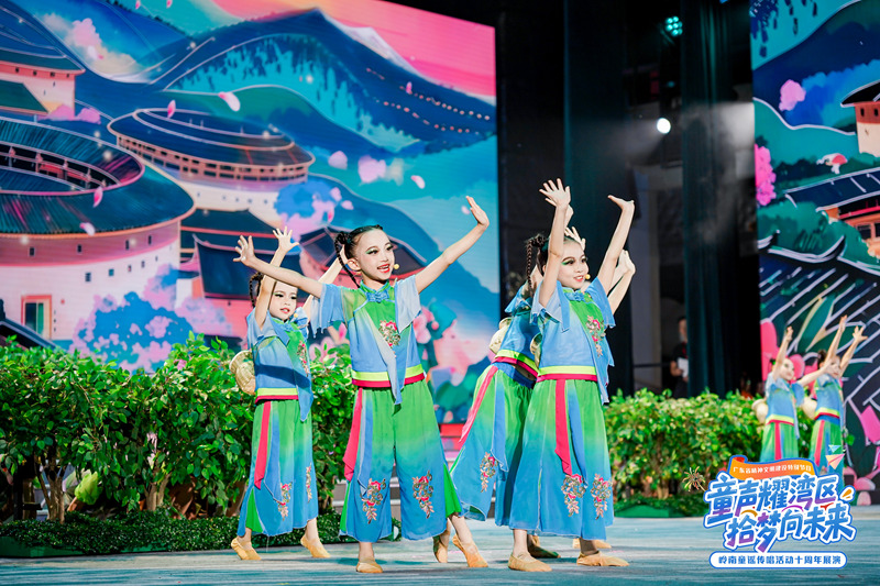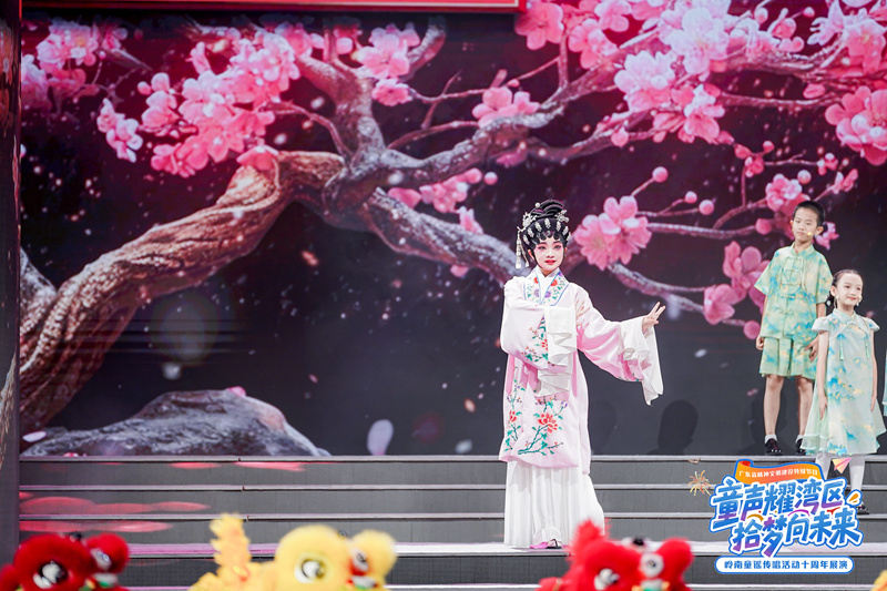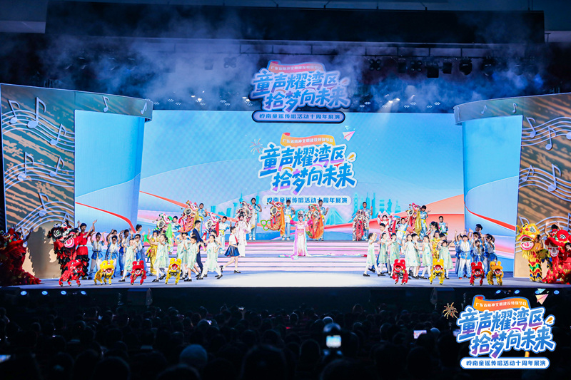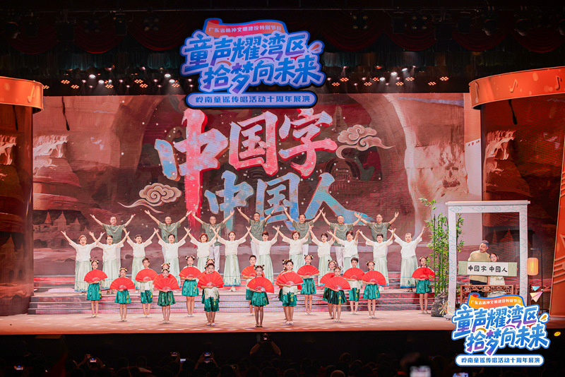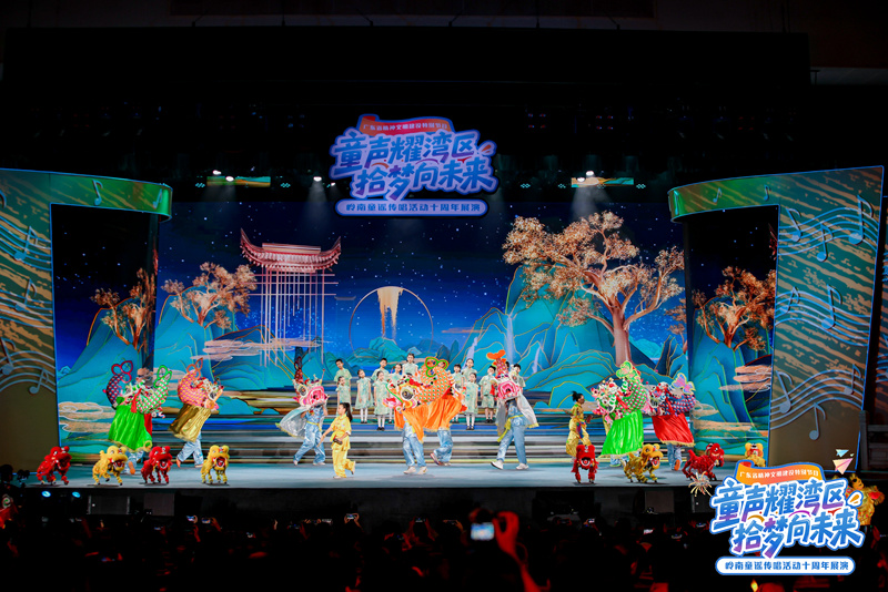 展演分为“古韵童游记”“新声万花筒”“童心传声机”“星辰望远镜”四大篇章,通过童声合唱、视频短片、现场访谈等形式,结合非遗、科技、体育等元素,用精彩的演绎展现了岭南童谣传唱活动开展十年来取得的丰硕成果和广东少年儿童昂扬向上的精神面貌,用嘹亮的歌声呈现了岭南大地推进“百千万工程”、喜迎十五运会、传承中华优秀传统文化、建设绿美广东的生动图景。