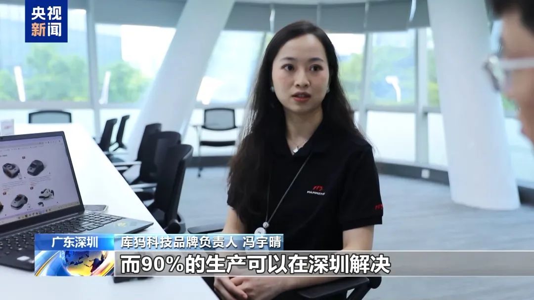 库犸科技品牌负责人 冯宇晴:大概70%的制造商都可以在深圳“机器人谷”解决,90%的生产可以在深圳解决。从样品创意的策划到样品真正落地,不到10天就可以达成。