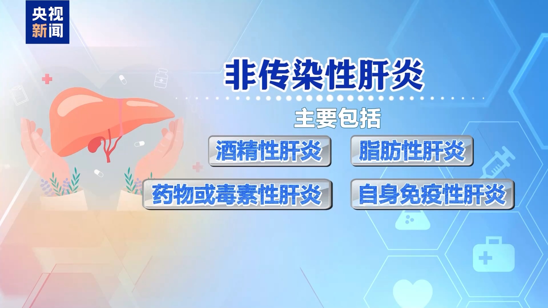 非传染性肝炎主要包括酒精性肝炎、脂肪性肝炎、药物或毒素性肝炎、自身免疫性肝炎。