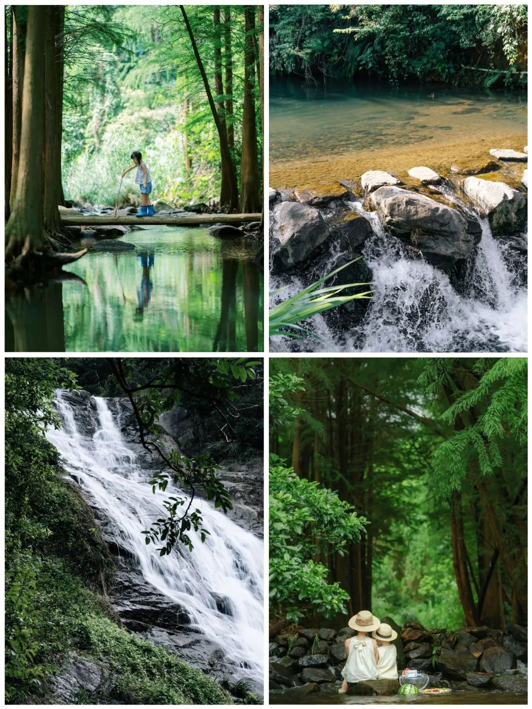 一走进马峦山,哗啦啦的流水声瞬间带走燥热。不止观瀑,马峦山也是溯溪绝佳之地,树荫把阳光切成细碎的光板,光脚踩进溪水那一刻,爽到飞起!