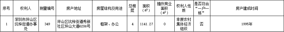 根据《深圳市坪山区坪山大道综合改造工程(北段)》项目的相关规定,我办事处已对本项目范围内房地产进行了相关确权工作,现将确权结果予于公示: