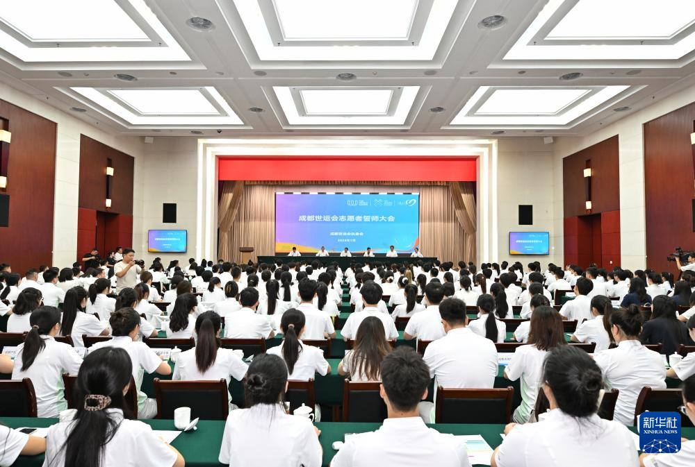 这是7月28日拍摄的成都世运会志愿者誓师大会现场。