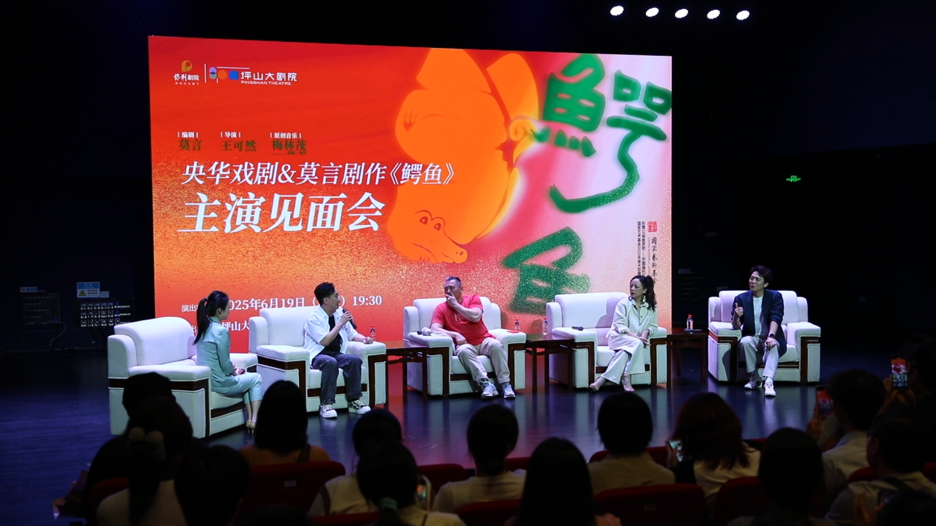 深圳新闻网2025年6月20日讯(记者 程熙)6月19日,央华戏剧&莫言剧作《鳄鱼》主演见面会在坪山大剧院举行,赵文瑄、邓萃雯、白凯南、李宗雷现身“黑匣子”小剧场,与观众面对面交流,分享演出心得、表演经验以及背后的精彩故事。