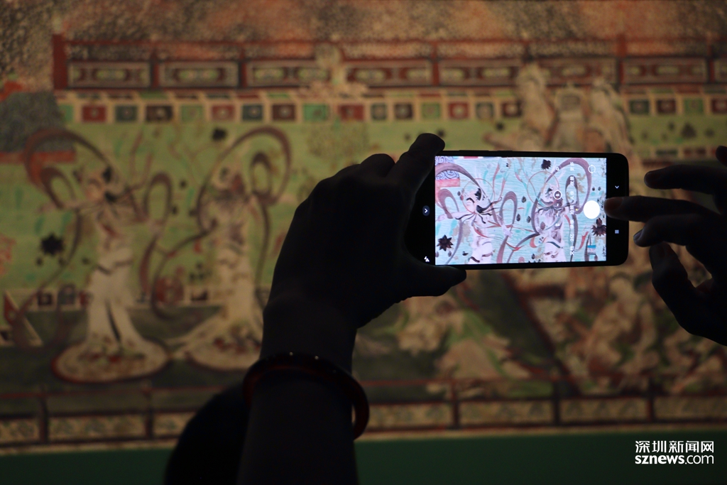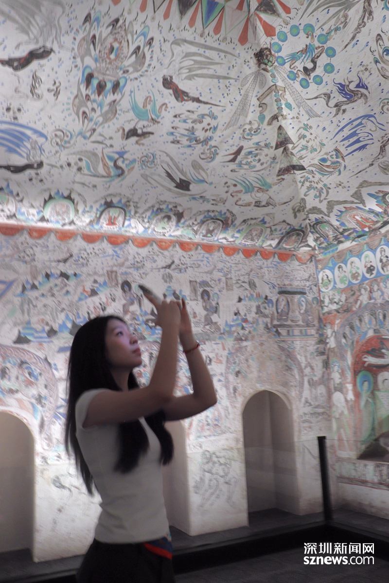 这也是一次可聆听、可触摸、可感知立体敦煌文化的机会。本次展览除呈现令人叹为观止的丰富文物外,更以多样化的沉浸式互动体验吸引观众。敦煌研究院联合腾讯打造的莫高窟第285窟数字沉浸体验,借助利亚德公司支持提供的4K高清屏,带观众身临其境穿越千年壁画世界。南山博物馆二层中庭的“衣见敦煌”互动区,则提供30余套A1牛成的敦煌主题服饰供观众自由选择,现场拍摄同款数字写真,亲身感受敦煌服饰魅力。