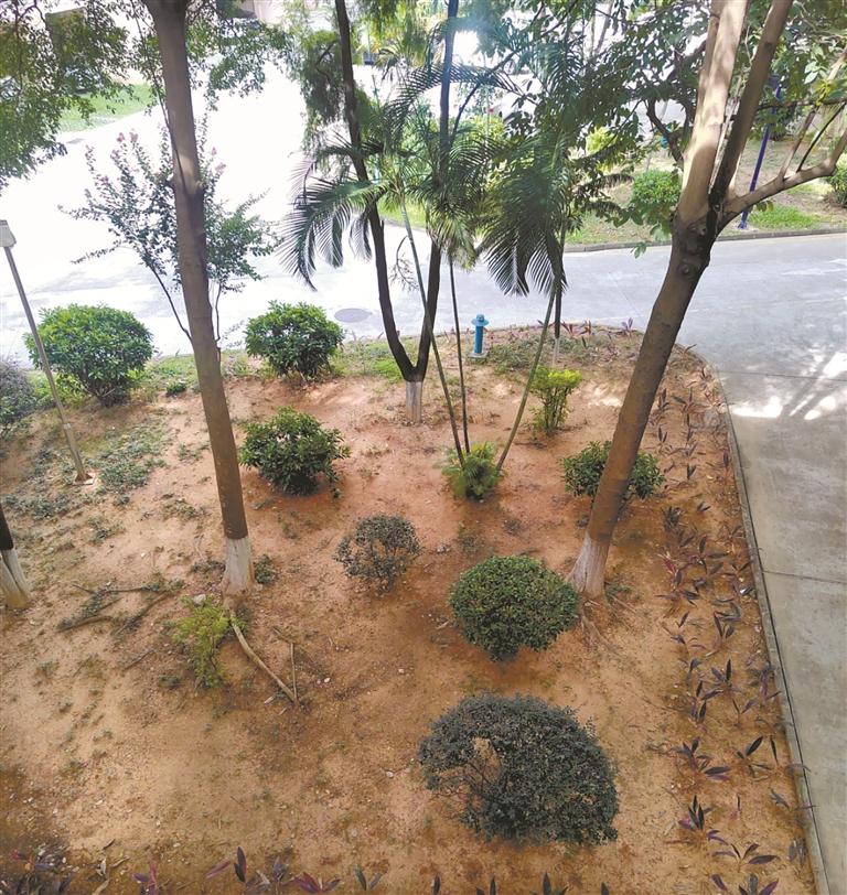 去年,下村社区东宝华庭小区有一块空地黄土裸露。居民王阿姨说:“之前这地方风吹日晒,没有人去管理,慢慢的绿植全部枯萎了。晴天风一吹尘土飞扬,雨天路过满脚泥巴,太让人烦恼。”