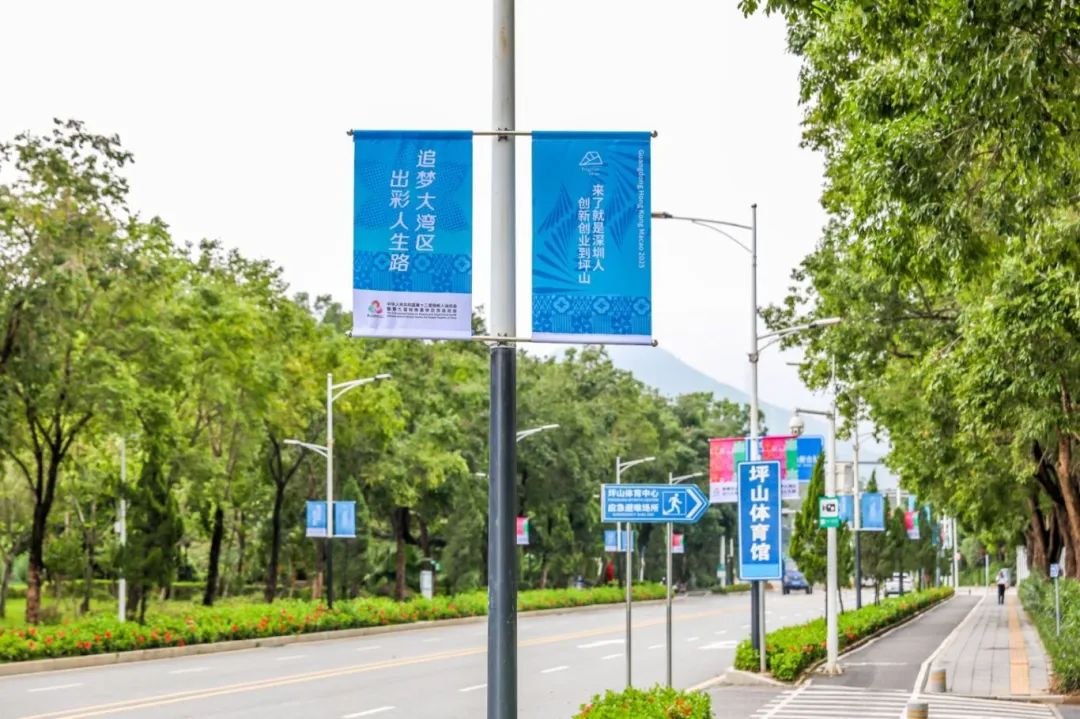 此时的深圳坪山赛事宣传氛围组已正式上线,各种全运元素已挂上街头,全民迎全运氛围拉满!