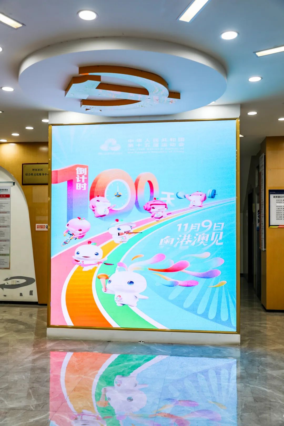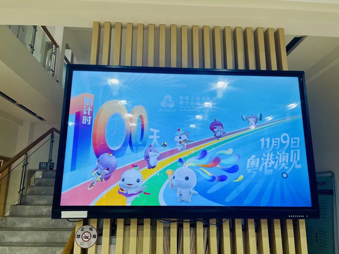 坪山各街道、社区大小荧屏集体“上新”,全运会相关元素遍布,营造浓厚的全民迎全运赛事氛围。