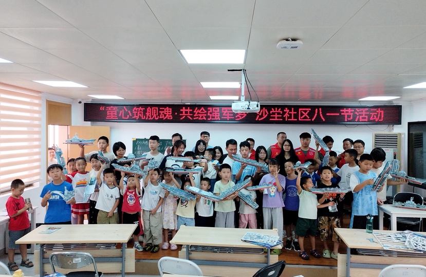 沙坣社区创新采用“1个主会场+3个分会场”联动模式,举办“童心筑舰魂·共绘强军梦”特别活动,吸引了社区内百余名儿童青少年及家长热情参与。
