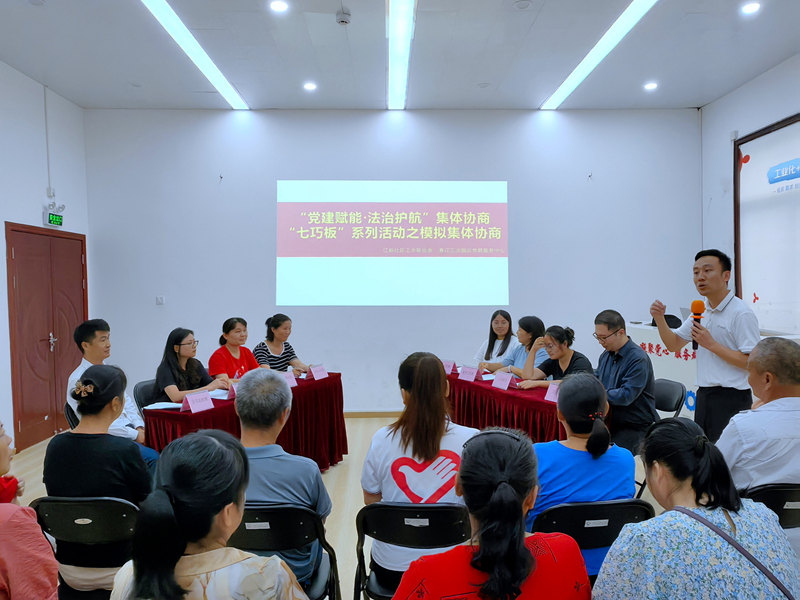 针对这些问题,园区党群服务中心以“党群+工会+N”模式为支撑,构建起“普法宣传—风险筛查—协商议事—诉求响应”全流程服务体系,以园区党群服务中心为平台,社区工联会为纽带,整合律师、志愿者、政府部门等资源,精心推出“法治服务七巧板”系列服务,帮助企业加强法治建设。