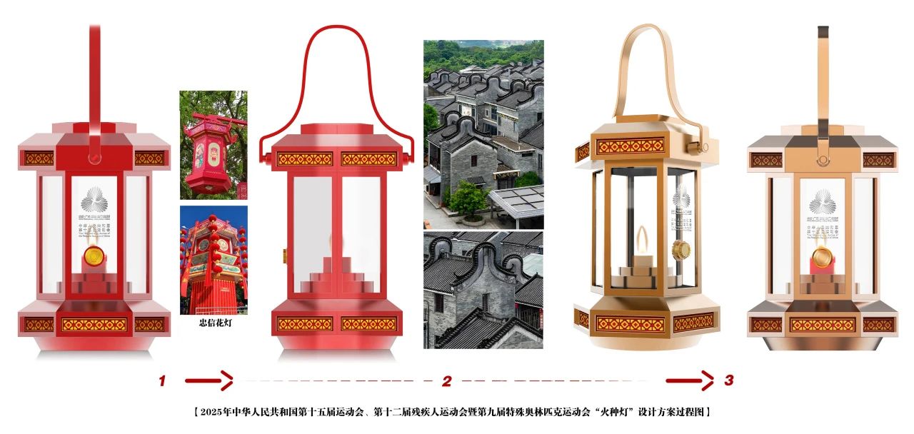 除火种盆外,李立全团队还完成了火炬与火种灯的设计。其中,火炬融合 “花觚” 与粤港澳大湾区元素,火种灯则融入广东连平“花灯”与岭南建筑“镬耳”元素,虽未最终入选,但100余张设计草图与概念方案,同样彰显了团队服务国家重大文化工程的努力。
