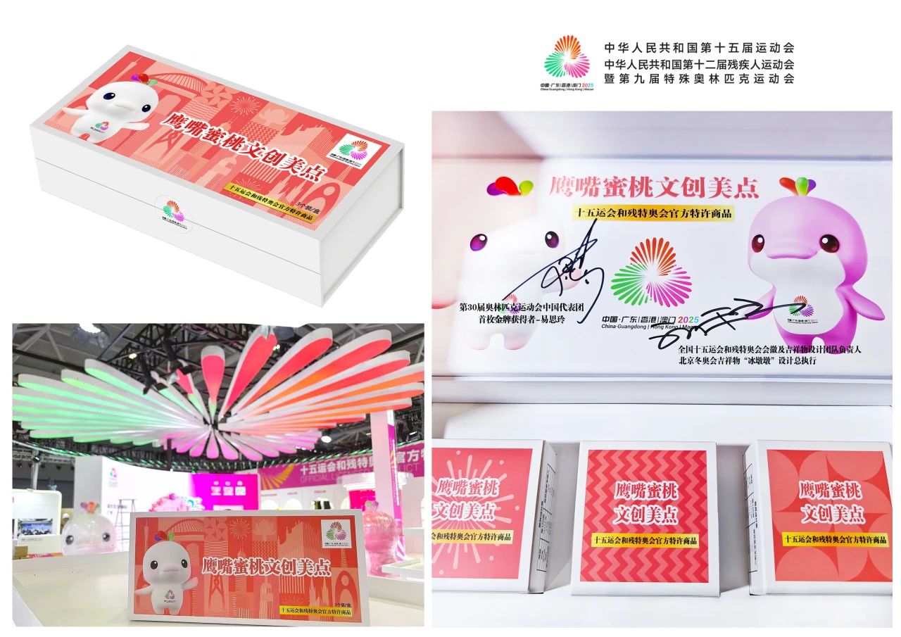 值得关注的是,团队同时深入拓展“三创赋三农”乡村振兴发展模式,借力十五运会和残特奥会国家级重大赛事平台,助力连平县农产品高质量发展。经过近两个月筹备,连平高山茶、鹰嘴蜜桃文创美点两款农产品成功入选,成为河源市唯一入选的赛事特许商品,并在第二十一届中国(深圳)国际文化产业博览交易会上亮相。