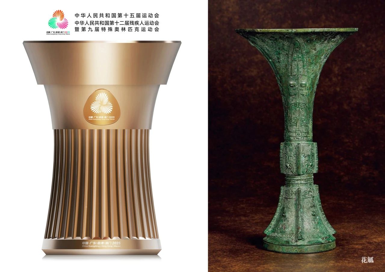 深圳技术大学团队紧扣会徽 “同心礼花、同心同源、深度融合” 的主题,以 “礼、源、融” 为文化根基,从《古文观止》《中国青铜器》等典籍中汲取养分,最终让“花觚”这一古礼器与现代体育盛会实现精神共鸣——既彰显三地“热情好客”的礼仪之道,又传递联办赛事的“激情如火”。