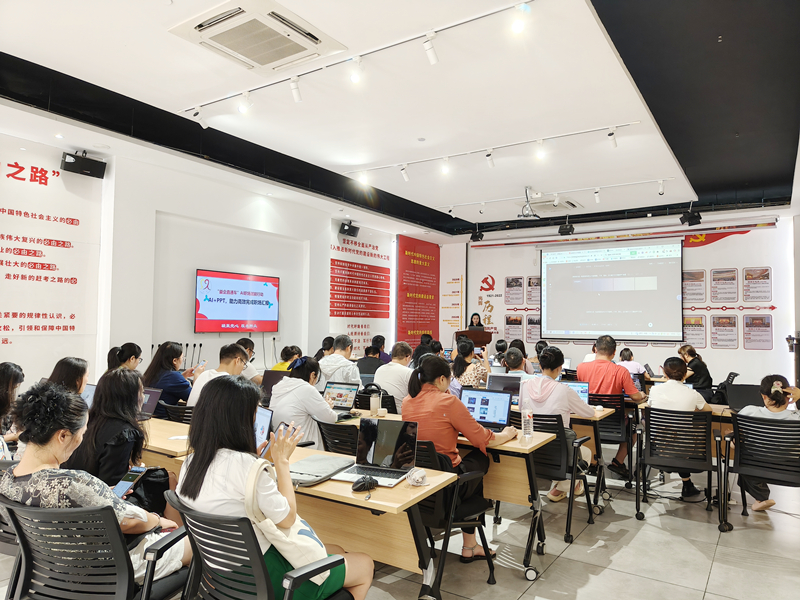 次日的“AI制作PPT职场汇报”专场则聚焦高效表达的视觉革命。讲师以“内容完善—智能美化—一键生成”为核心路径,化繁为简。实操环节,输入简单提纲后,AI瞬间生成风格统一、图文并茂的幻灯片,令在场者惊叹。更令人印象深刻的是AI对内容的深度优化能力——自动提炼重点、补充数据支撑、调整逻辑结构。“智能设计建议真是美学救星,”一位技术工程师调整配色方案后感叹,“专业感立显,再不用为排版熬夜。”