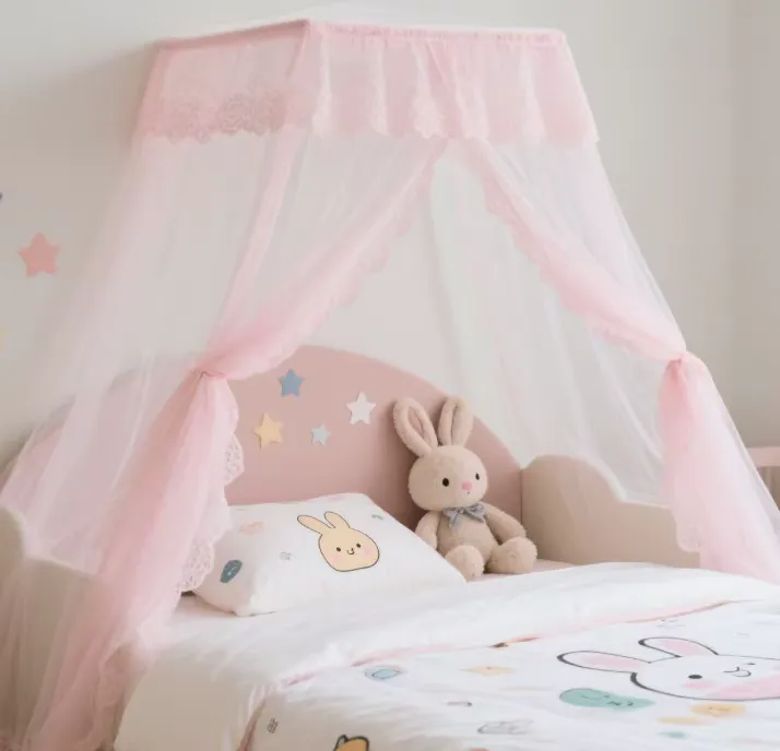 蚊帐魔法:婴儿床加装全包围蚊帐,边缘塞进床垫——打造“宝宝安全舱”。