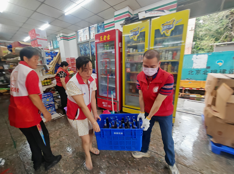 当预警信号拉响,龙田社区党群社工充分发挥“红色枢纽”作用,通过线上线下双渠道排查,重点关注残障人士、独居老人、困境儿童等群体,建立“一对一”帮扶机制,为受灾居民提供情绪安抚、清理淤泥及修缮房屋等服务,推进后续恢复工作。同时,迅速组织集结志愿者队伍,身着红马甲协力逆雨而行,他们的身影出现在深水区,协助交警引导车辆和居民安全避险;出现在街道上,齐心协力清理路障淤泥,开展环境消杀;出现在楼道间,小心翼翼地背着独居老人下楼,送往安全地带;出现在商户门前,合力抢运物资,最大程度减少财产损失;出现在居民家,排查修缮房屋,帮助转移贵重物品,红色马甲用实际行动诠释着专业奉献的精神,成为防汛中温暖的力量。“这抹红色让我们特别安心!” 居民张大爷的话语道出群众心声。