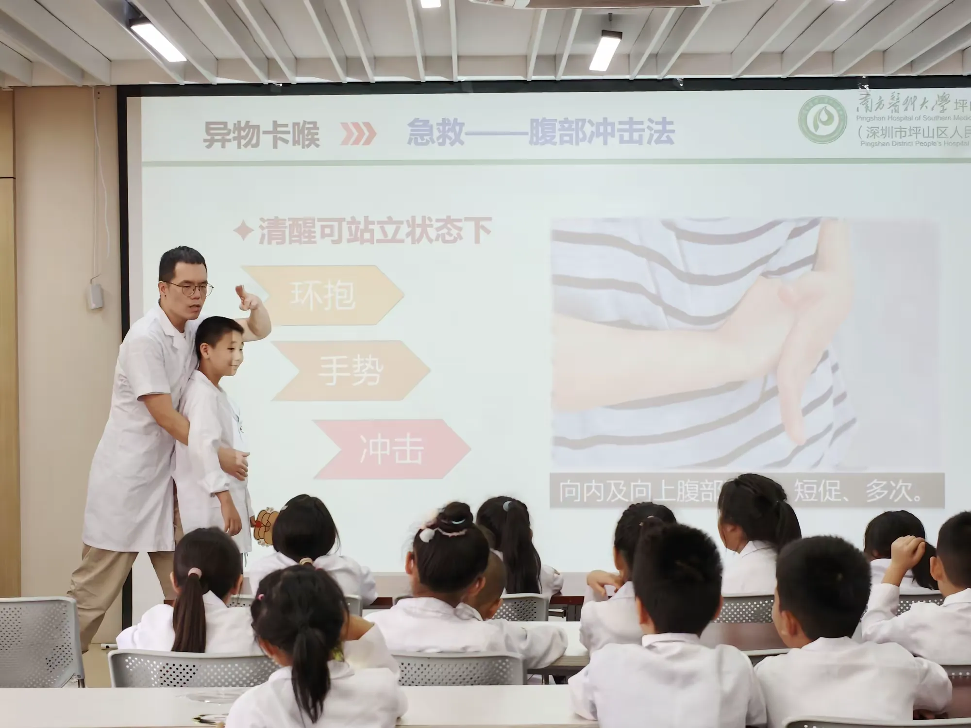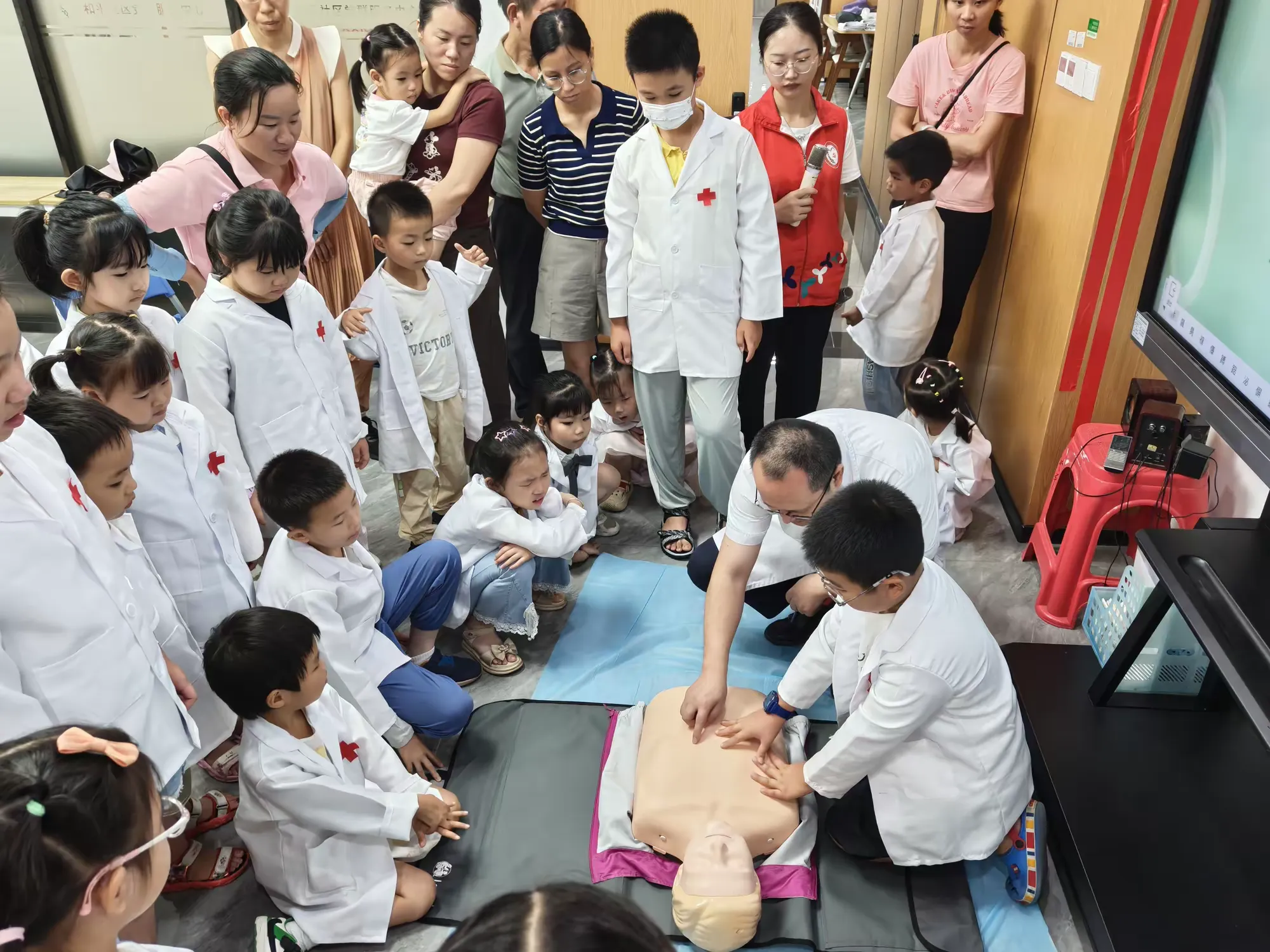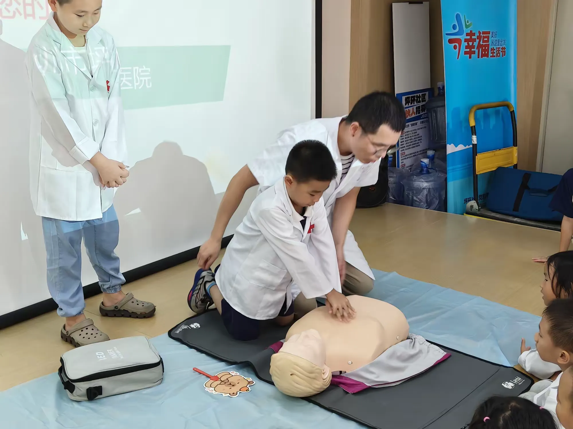 急救英雄营:技能中心的导师们搭建“生命守护训练场”。孩子们认真练习“生命的拥抱”(海姆立克急救法),小手按呀按,学习成为关键时刻能挺身而出的“社区小卫士”,成就感满满!