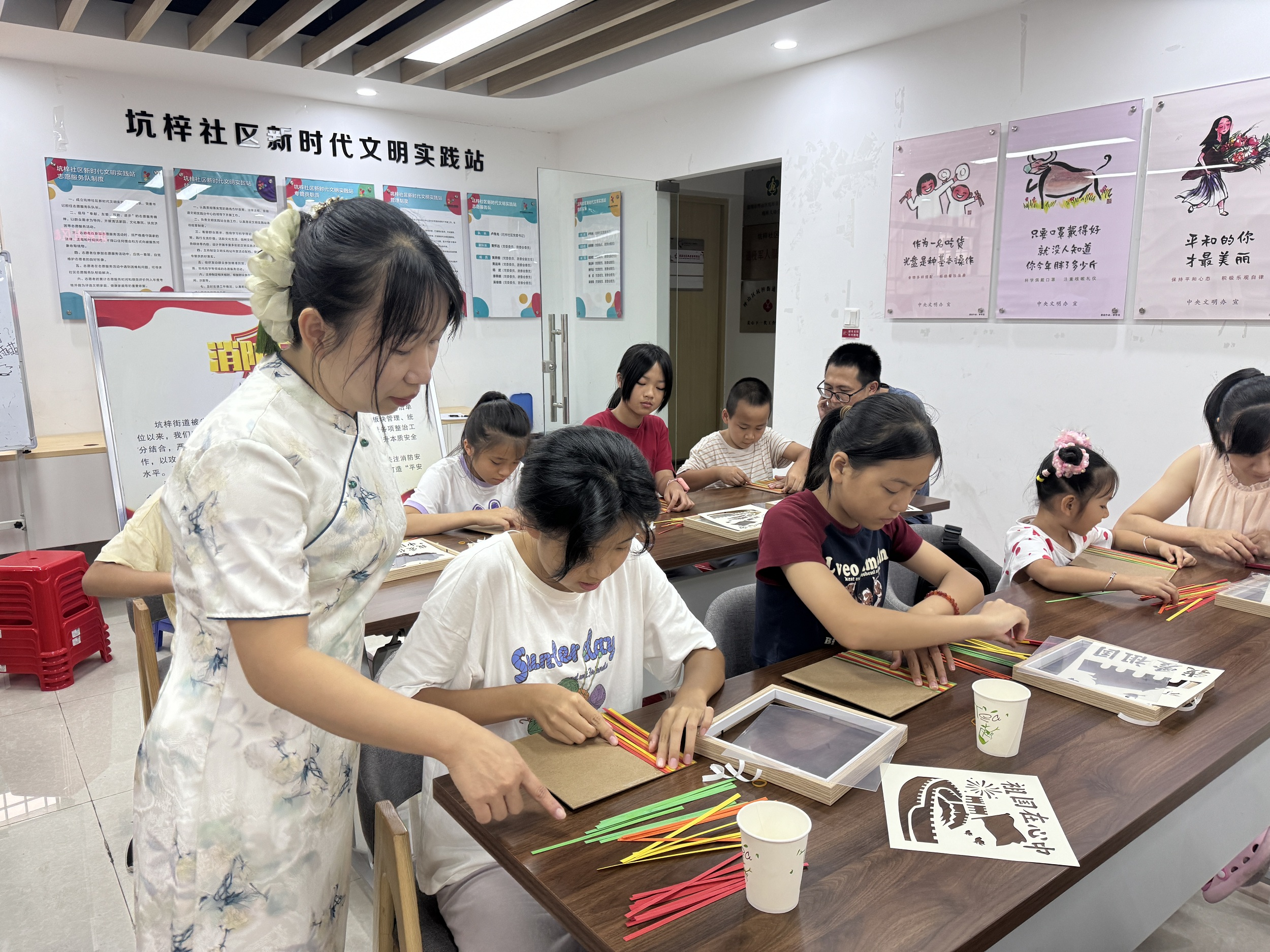 围绕社区居民生活需求,坑梓社区新时代文明实践站联合爱心企业、学校、物业、商圈等力量,持续开展形式多样文明实践活动。活动涵盖环境美化、文化惠民、儿童教育及便民服务四大领域:组织义务植树活动,为社区人居环境增添一抹绿色;开展游园活动,丰富群众精神文化生活;携手幼儿园开展“巧手庆党恩”亲子手工课,培育青少年爱国情怀;联动爱心商家开展义剪便民服务,为居民提供贴心便利。
