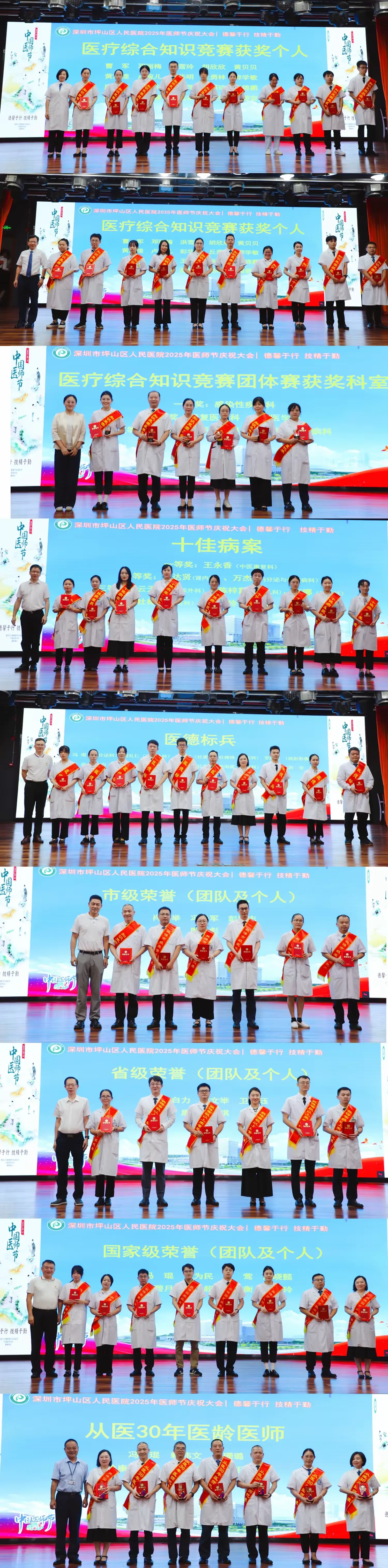 钱毅院长代表医院领导班子,向辛勤耕耘在全院各个岗位上的医师同仁们致以最崇高的节日问候和最衷心的感谢。他深情回顾了过去一年医院在医疗、教学、科研、管理等方面取得的成绩,高度赞扬了全院医务工作者,特别是广大医师在守护人民健康、应对突发公共卫生事件、提升医疗服务质量、强化学科建设中所展现出的专业素养、奉献精神和责任担当。他勉励大家不忘初心,继续为医院发展和健康坪山建设贡献智慧与力量。