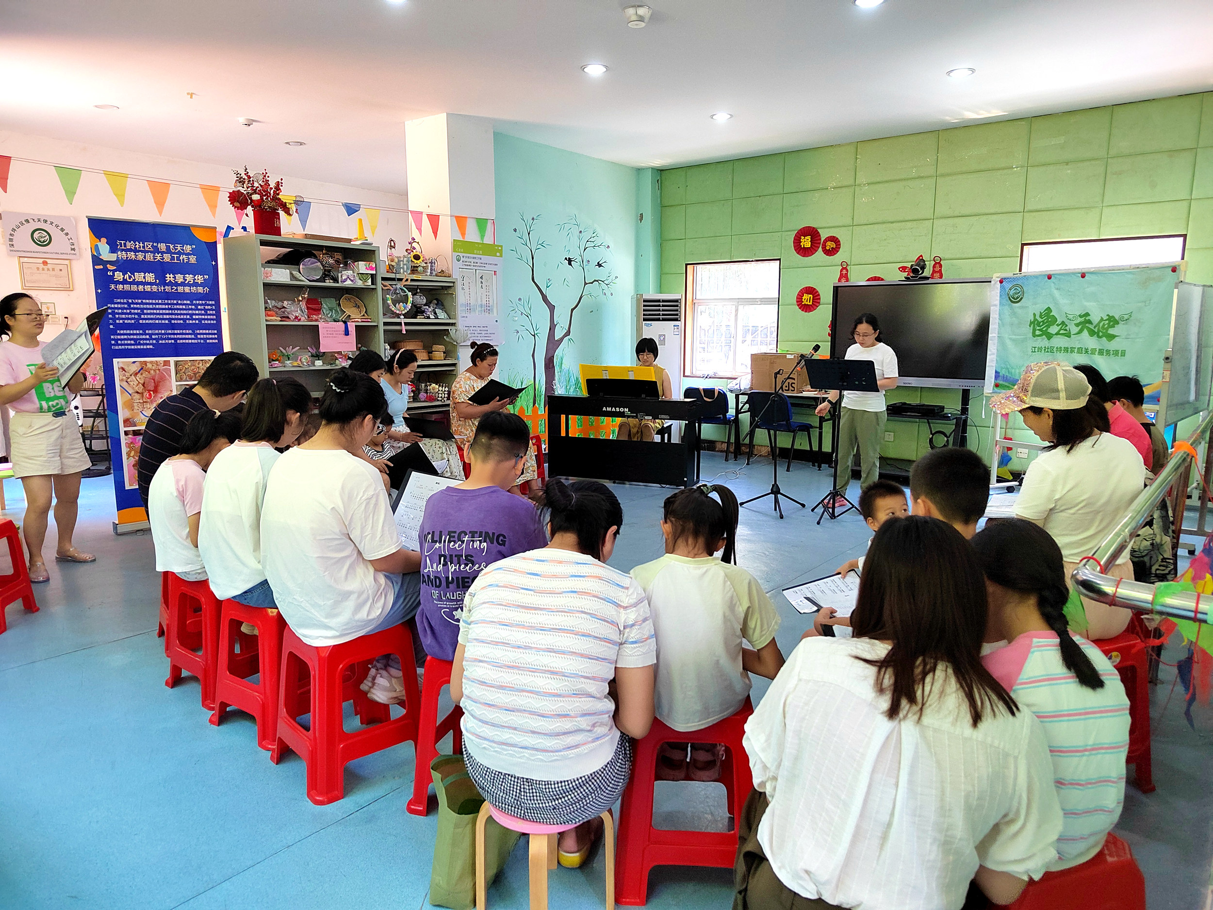 此次活动共有五节课程,于每周六上午开展。活动由专业社工策划并得到了热心企业音爱而生音乐探索促进体验中心的大力支持。课程设置秉持“优势视角”和“社会支持网络构建”专业理念,旨在通过合唱这一艺术媒介,为“慢飞天使”们搭建一个与同龄伙伴平等交流、展示自我的融合平台,同时也为长期承担照料压力的家长创造一个安全、放松的休息空间。专业的老师和社工们精心设计了每一节活动内容,引导组员在合唱的集体氛围中逐步实现情绪疏导与压力释放。