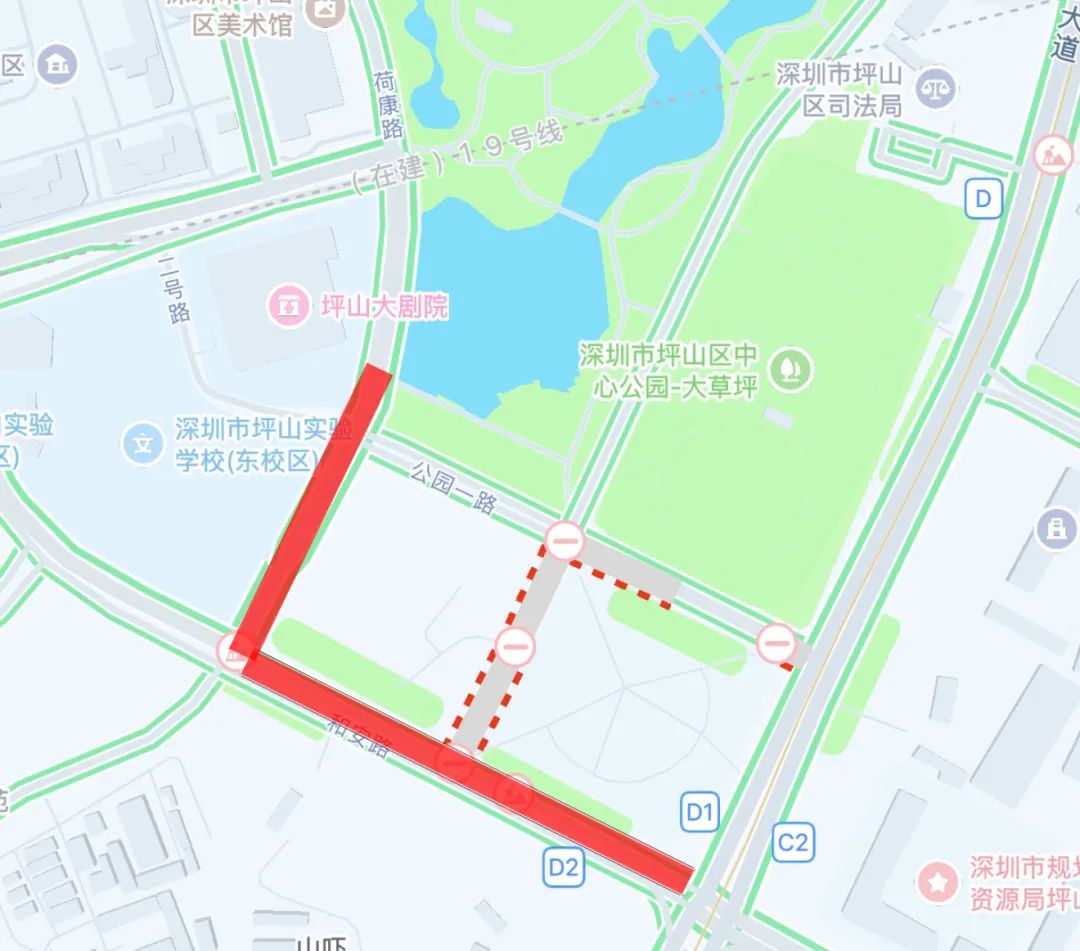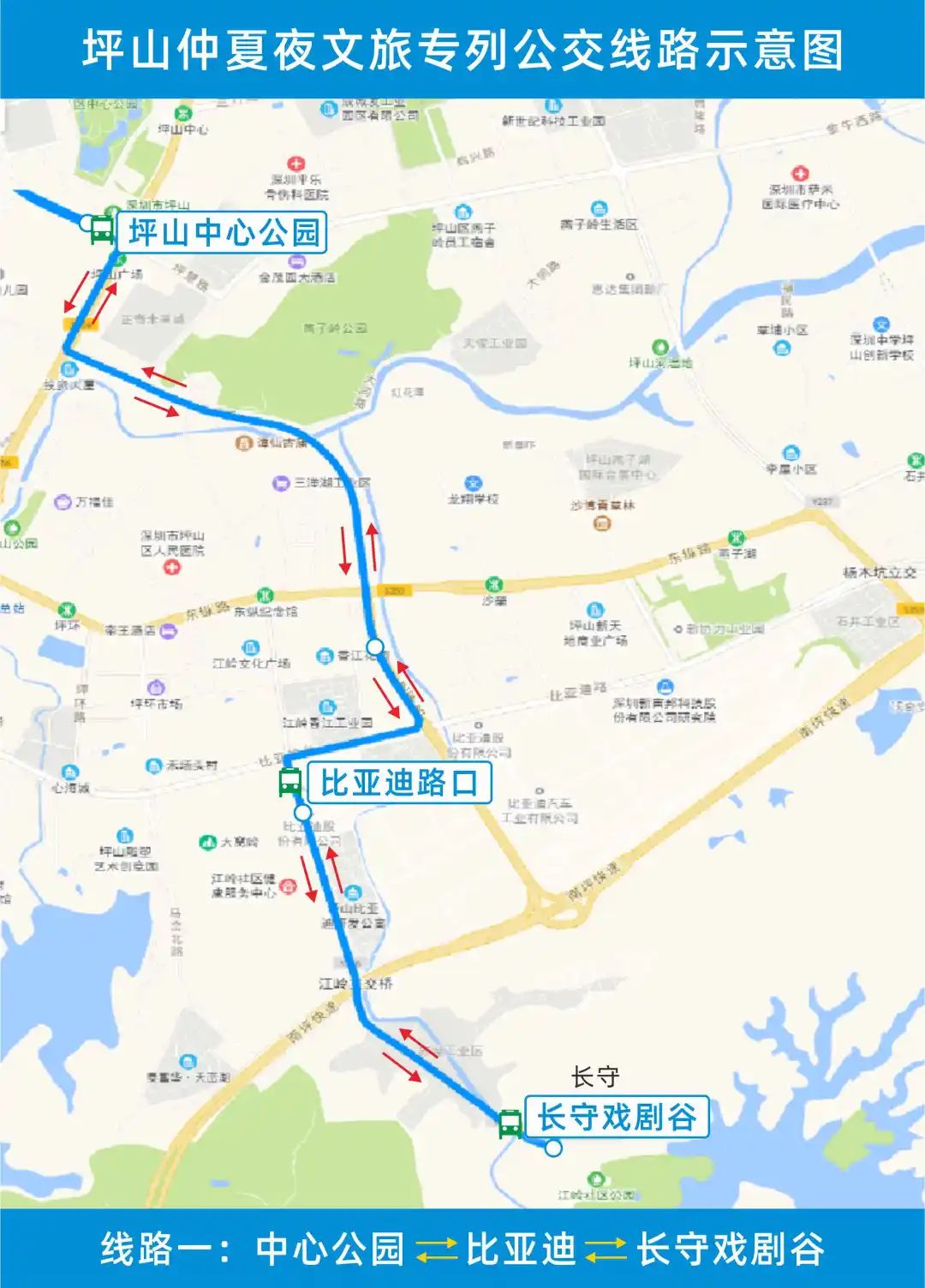运行线路一:坪山中心公园-比亚迪-长守戏剧谷
