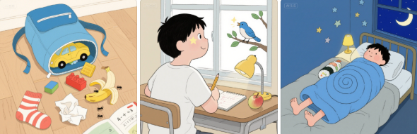 ► 视觉提示法:把“写作业步骤”画成漫画贴桌上;