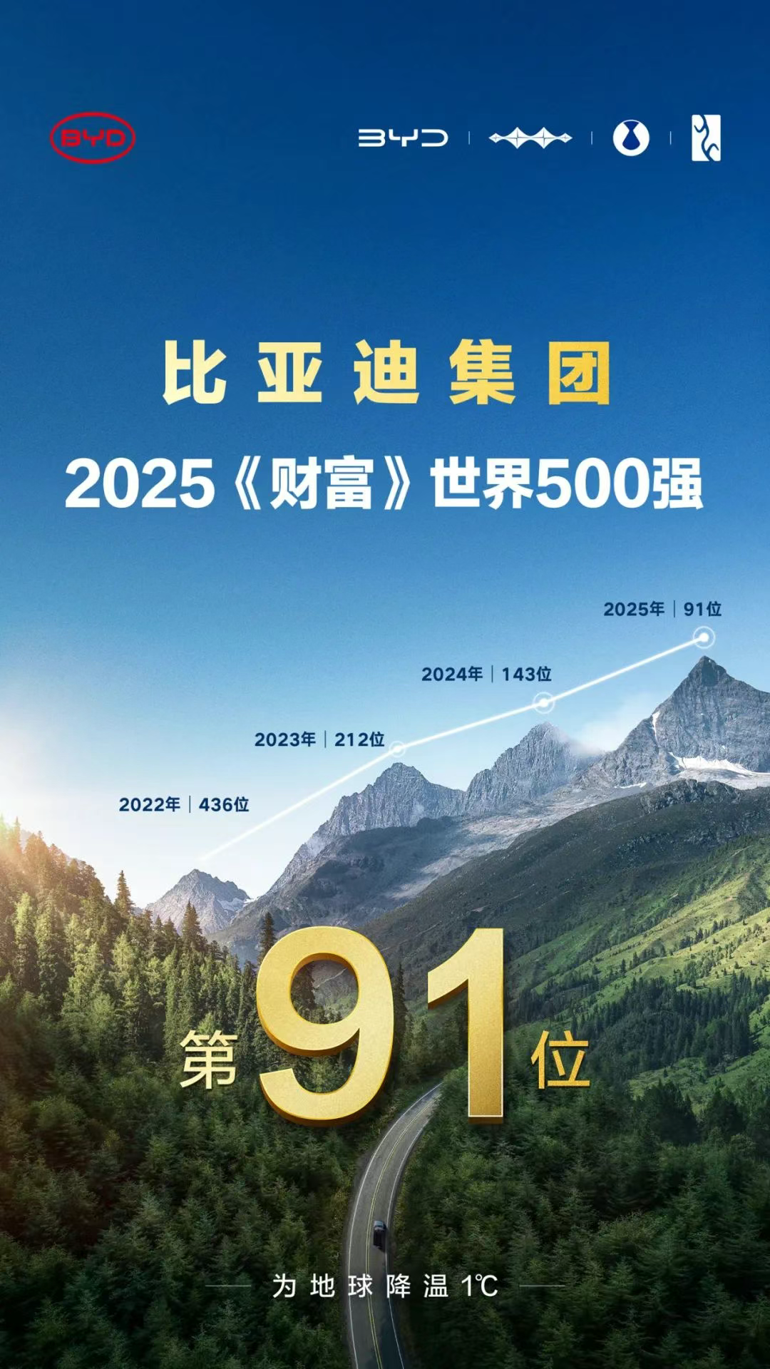 日前,2025年《财富》世界500强榜单揭晓,比亚迪位列第91位,连续四年上榜并成功跻身全球前百。这家扎根坪山、立足深圳、放眼全球的中国品牌,正以自主创新引领全球新能源汽车产业变革。
