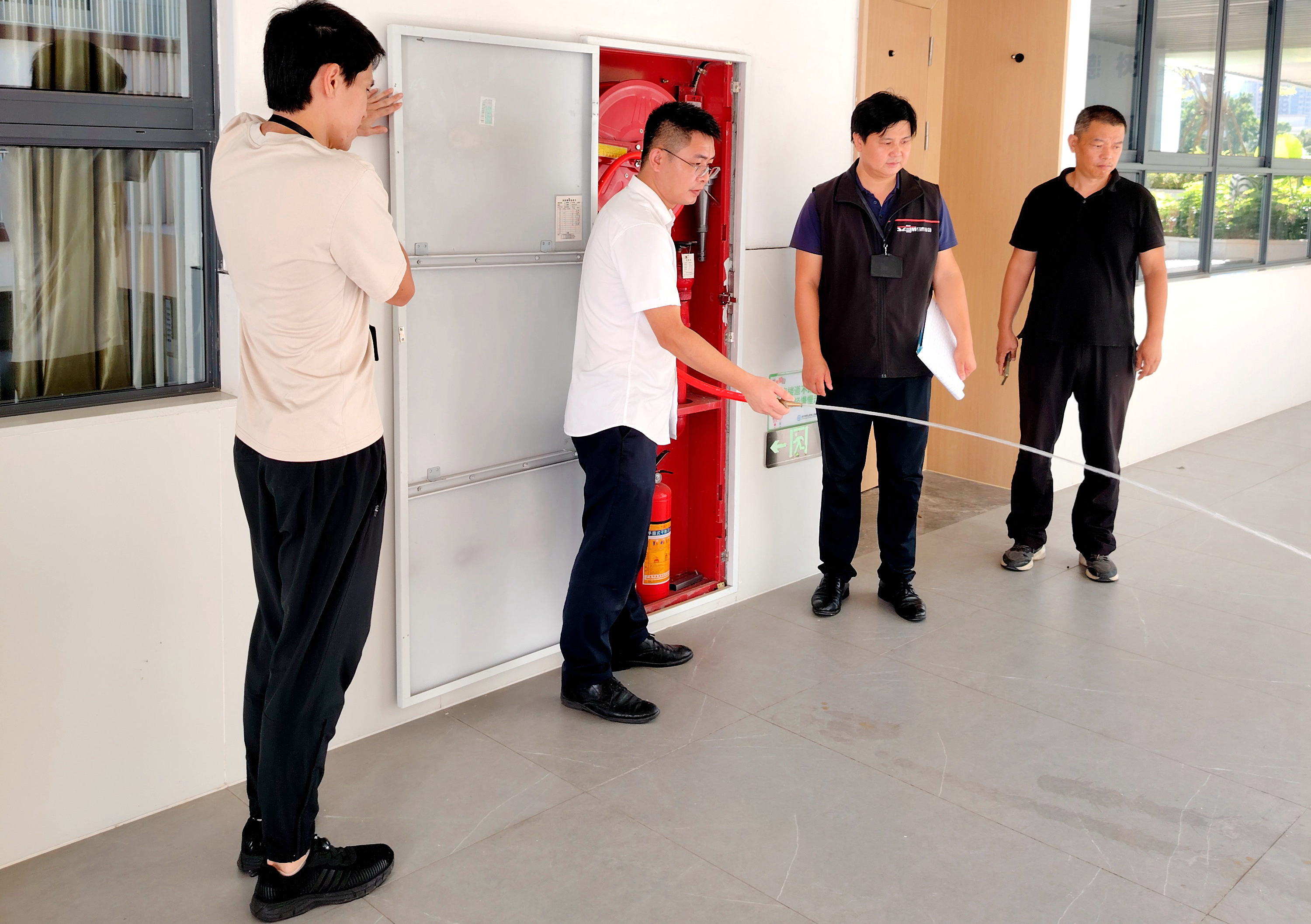 检查行动同步在校内外展开。在学校内部主要走访各教室、宿舍、天台、消控室、食堂等地点,检查校园防火设备情况,并对厨房燃气安全情况进行着重检查,同时加强对学校教职工作人员的消防安全等安全知识宣传教育。校外部分主要排查校园周边是否存在交通安全隐患,排查校园周边水域是否有安全措施、是否竖立警示牌等情况,从而自内向外,为孩子们搭建起立体的校园安全屏障。