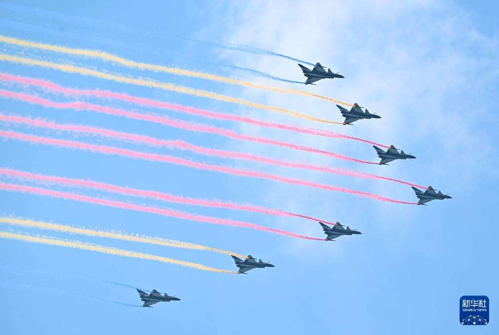 9月3日,纪念中国人民抗日战争暨世界反法西斯战争胜利80周年大会在北京隆重举行。这是教练机梯队接受检阅。